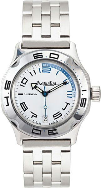 Отечественные часы, прошедшие проверку временем, для ценителей комфорта и практичности. Амфибия Классика. В механизме 31 камень, частота 19800 полуколебаний в час. Запас хода 31 час. Противоударное устройство оси баланса. Браслет с раскладывающейся застежкой. Производитель оставляет за собой право вносить изменения во внешний вид часов.