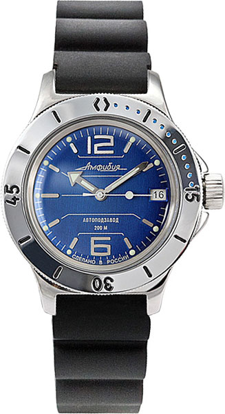 Часы со спортивным дизайном для сильных мужчин. Они не подведут даже в самых экстремальных условиях. Амфибия Классика. В механизме 31 камень, частота 19800 полуколебаний в час. Запас хода 30 часов. Противоударное устройство оси баланса. Заводная головка с защитой. Производитель оставляет за собой право вносить изменения во внешний вид часов.