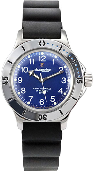 Проверенные временем российские часы сочетают в себе тщательно выверенный механизм, лаконичный мужской стиль и качественные материалы. Амфибия Классика. В механизме 31 камень, частота 19800 полуколебаний в час. Запас хода 31 час. Противоударное устройство оси баланса. Циферблат часов защищает органическое стекло. Заводная головка с защитой. Производитель оставляет за собой право вносить изменения во внешний вид часов.