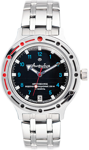 Часы со спортивным дизайном для сильных мужчин. Они не подведут даже в самых экстремальных условиях. Амфибия Классика. В механизме 31 камень, частота 19800 полуколебаний в час. Запас хода 31 час. Противоударное устройство оси баланса. Браслет с раскладывающейся застежкой. Производитель оставляет за собой право вносить изменения во внешний вид часов.