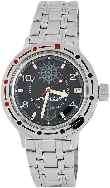 Стильные и удобные часы с автоподзаводом, достаточно элегантные, чтобы соответствовать неофициальному дресс-коду. Амфибия Классика. В механизме 31 камень. Запас хода 31 час. Противоударное устройство оси баланса. Вращающийся безель. Завинчивающаяся заводная головка. Браслет с раскладывающейся застежкой. Производитель оставляет за собой право вносить изменения во внешний вид часов.