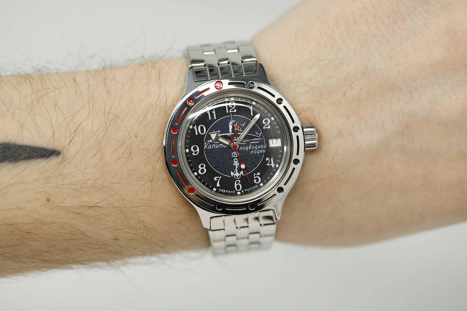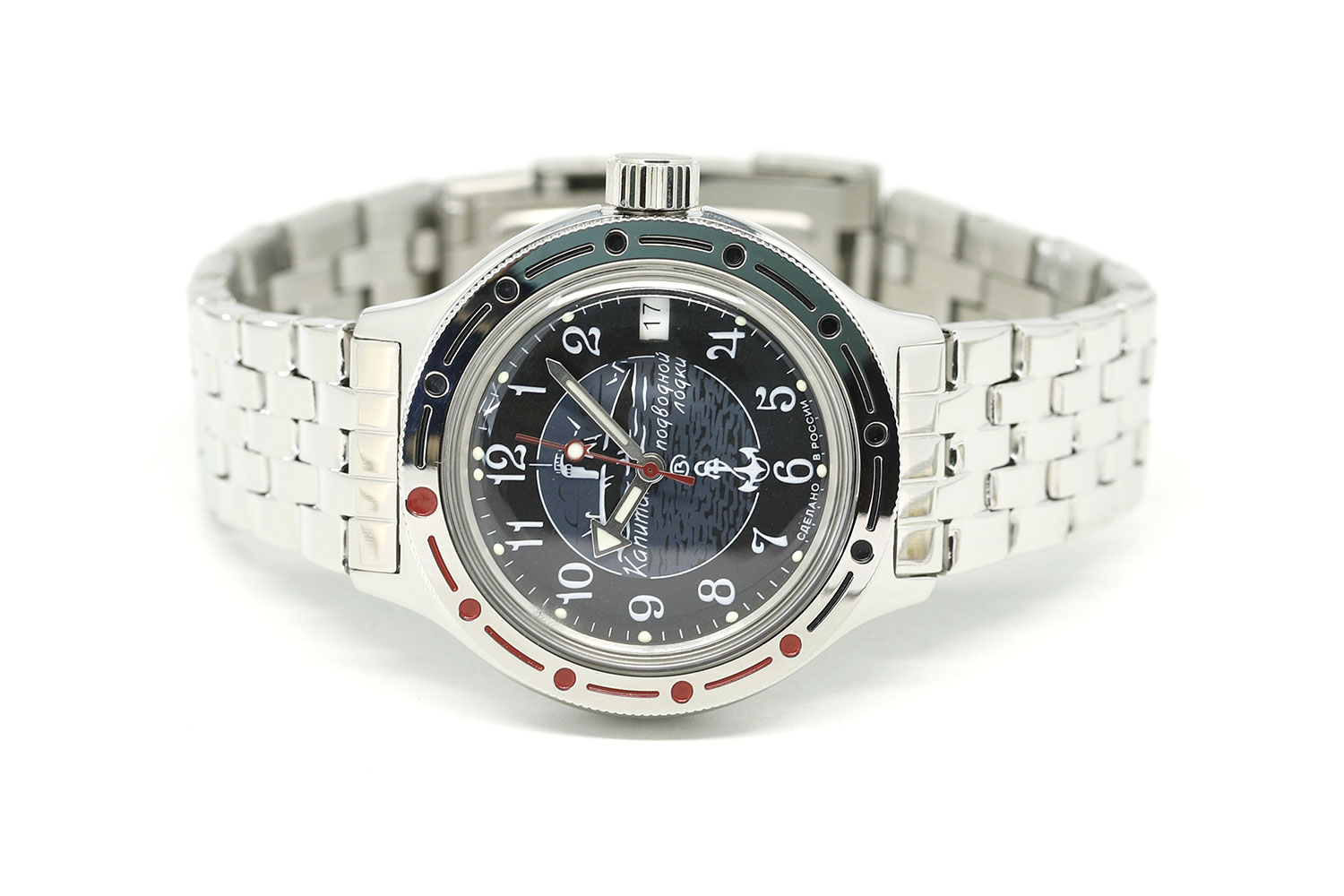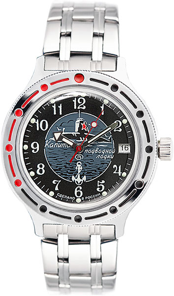 Эти практичные часы великолепно сидят на руке и позволят вам чувствовать себя уверенно в любой обстановке. Амфибия Классика. В механизме 31 камень, частота 19800 полуколебаний в час. Запас хода 31 час. Противоударное устройство оси баланса. Браслет с раскладывающейся застежкой. Производитель оставляет за собой право вносить изменения во внешний вид часов.