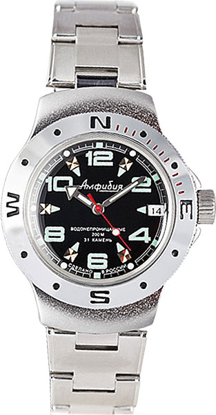 Часы со спортивным дизайном для сильных мужчин. Они не подведут даже в самых экстремальных условиях. Амфибия Классика. В механизме 31 камень, частота 19800 полуколебаний в час. Запас хода 31 час. Противоударное устройство оси баланса. Заводная головка с защитой. Браслет с раскладывающейся застежкой. Производитель оставляет за собой право вносить изменения во внешний вид часов.