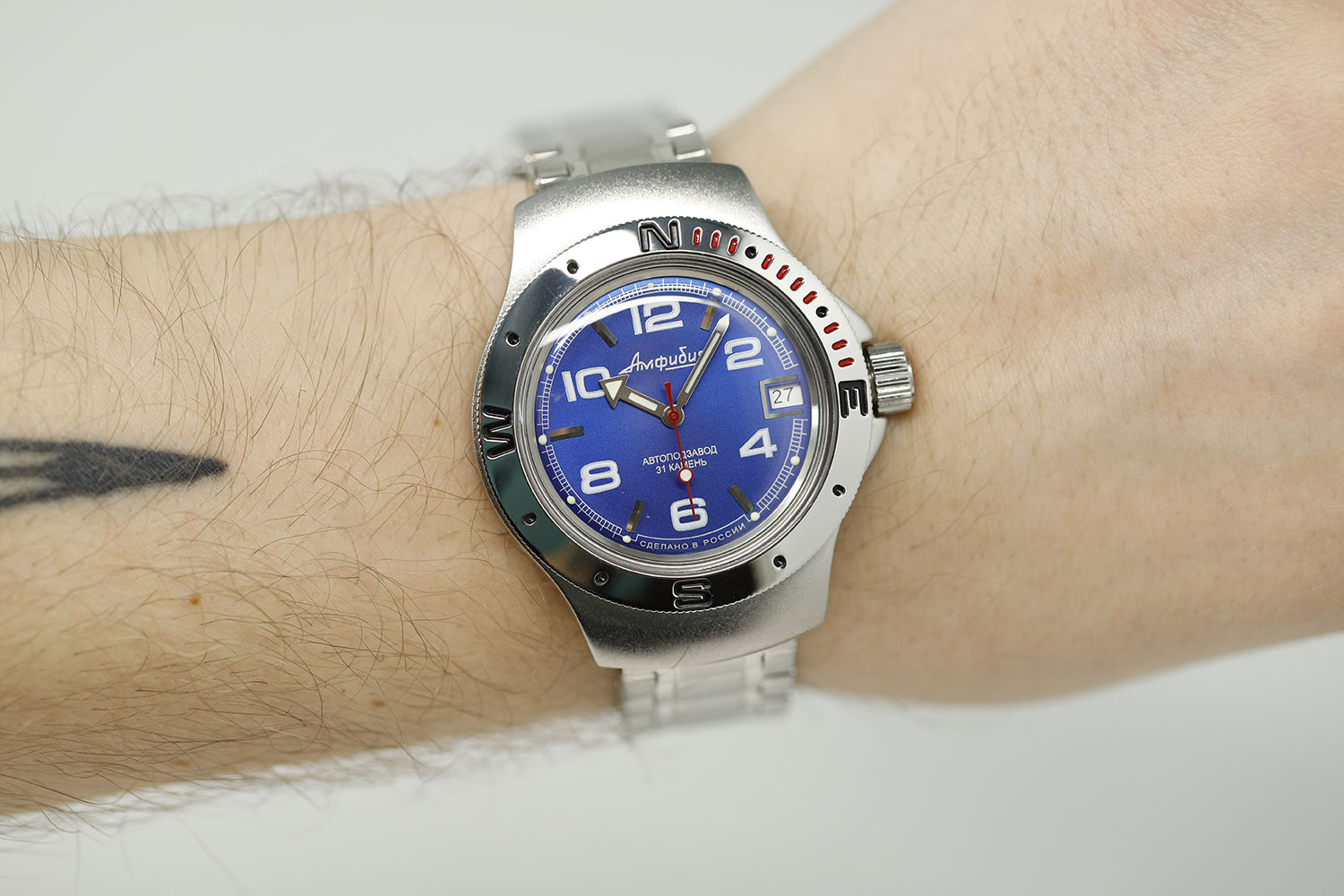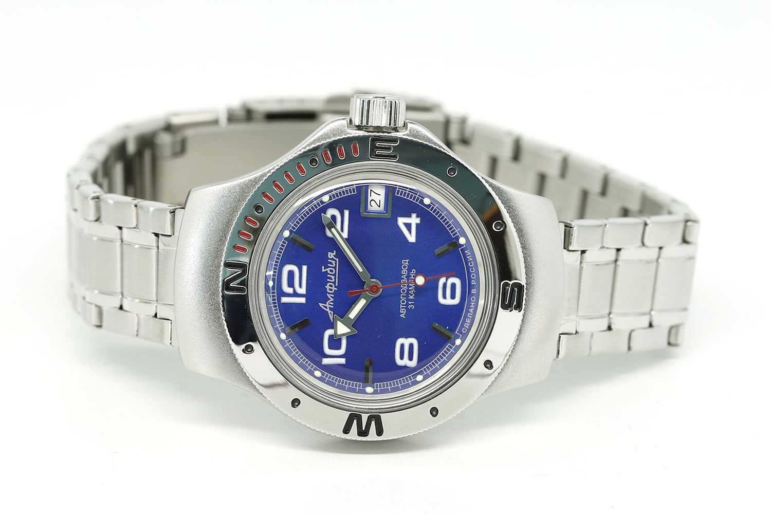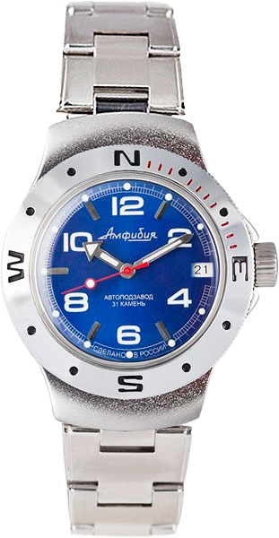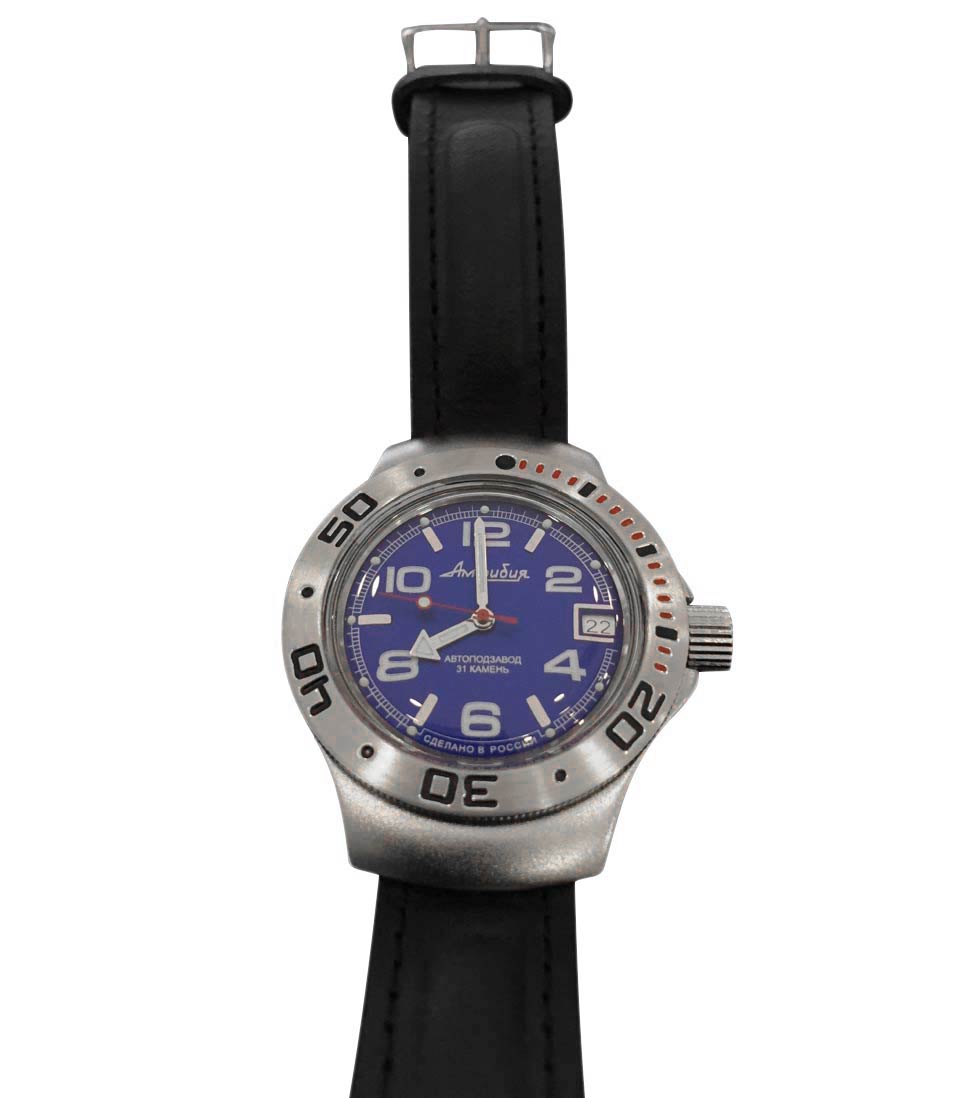 Отечественные часы, прошедшие проверку временем, для ценителей комфорта и практичности. Амфибия Классика. В механизме 31 камень, частота 19800 полуколебаний в час. Запас хода 31 час. Противоударное устройство оси баланса. Производитель оставляет за собой право вносить изменения во внешний вид часов. При заказе уточняйте у менеджера выбранный вариант.
