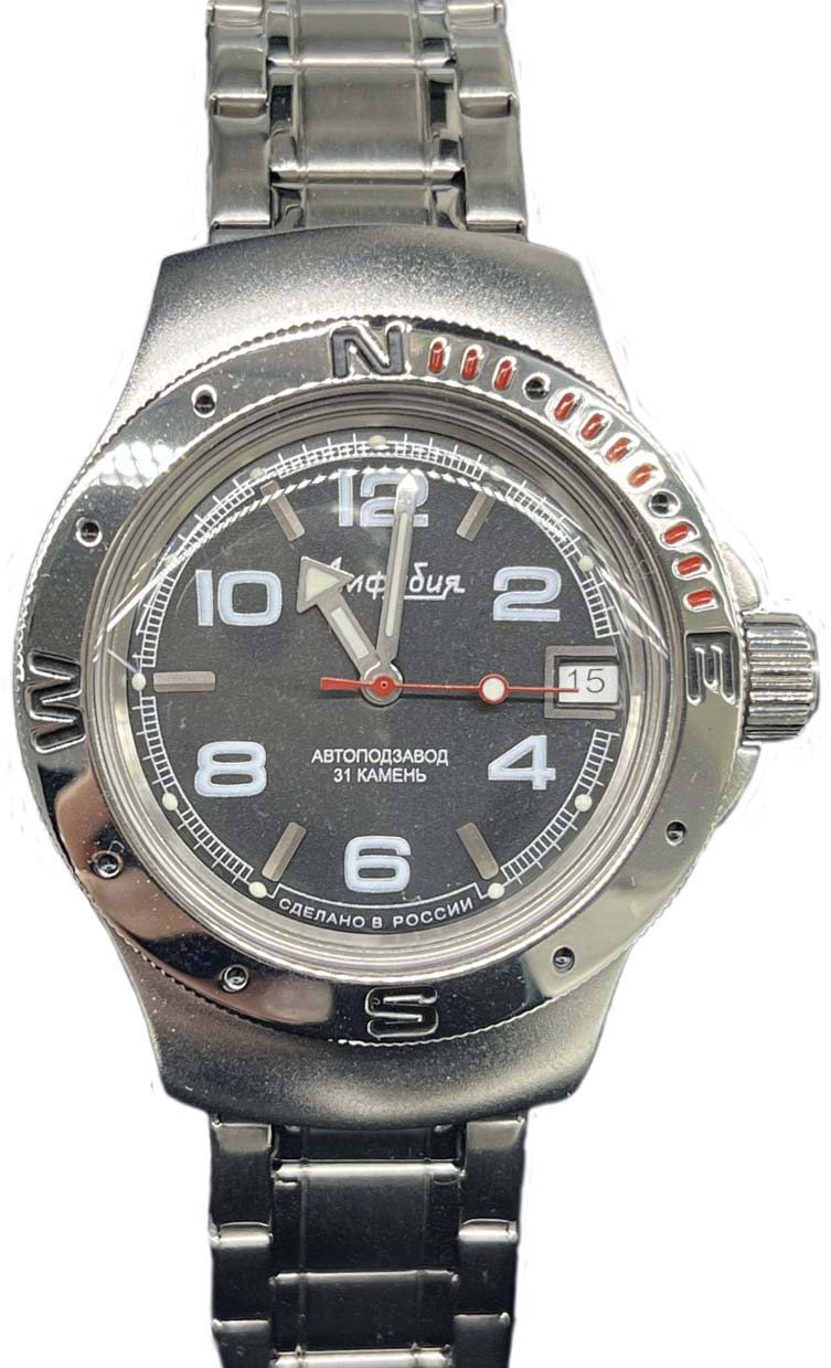Отечественные часы, прошедшие проверку временем, для ценителей комфорта и практичности. Амфибия Классика. В механизме 31 камень, частота 19800 полуколебаний в час. Запас хода 31 час. Противоударное устройство оси баланса. Заводная головка с защитой. Браслет с раскладывающейся застежкой. Производитель оставляет за собой право вносить изменения во внешний вид часов.