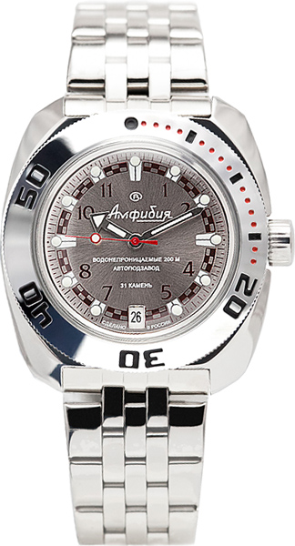Часы со спортивным дизайном для сильных мужчин. Они не подведут даже в самых экстремальных условиях. Амфибия Классика. В механизме 31 камень, частота 19800 полуколебаний в час. Запас хода 31 час. Противоударное устройство оси баланса. Браслет с раскладывающейся застежкой. Производитель оставляет за собой право вносить изменения во внешний вид часов.