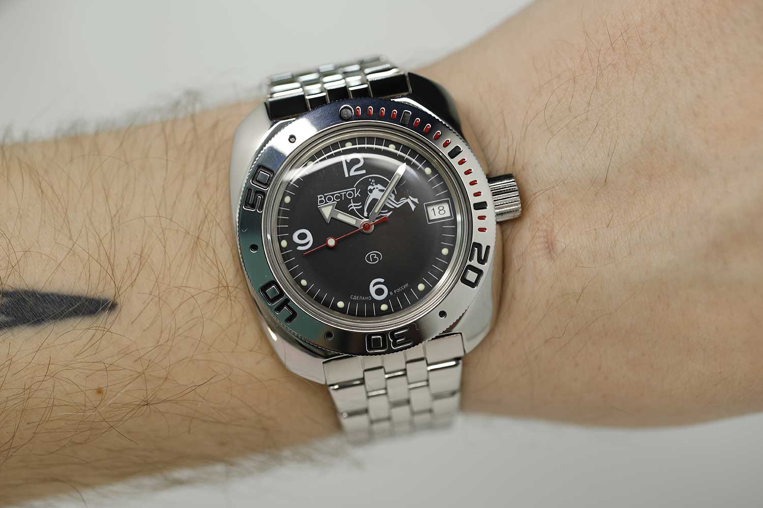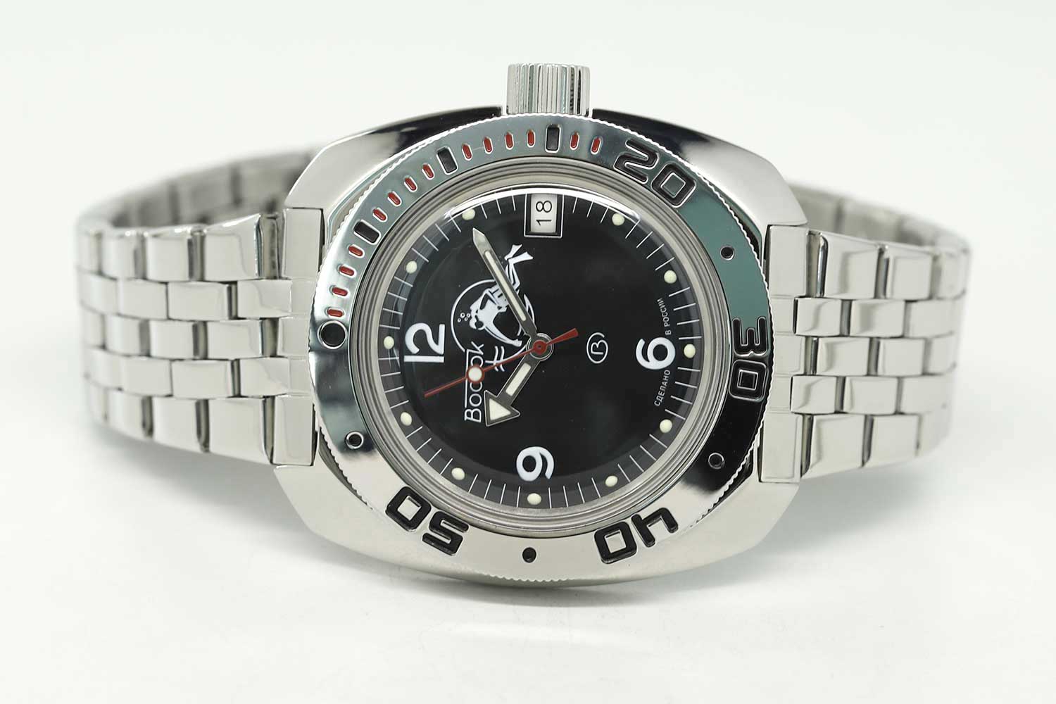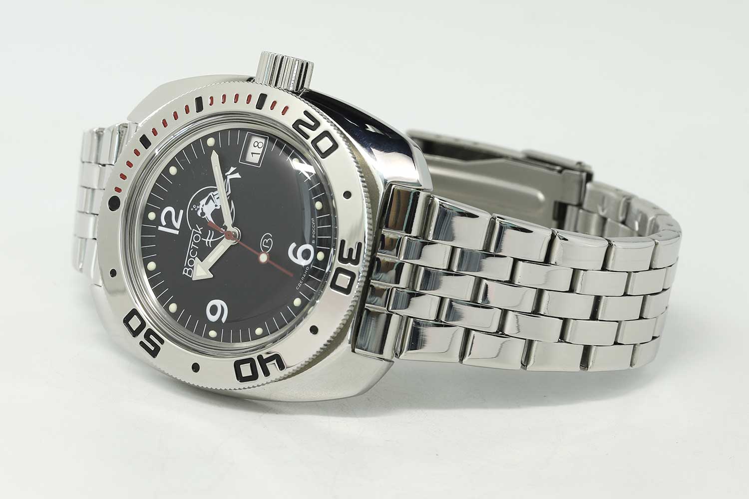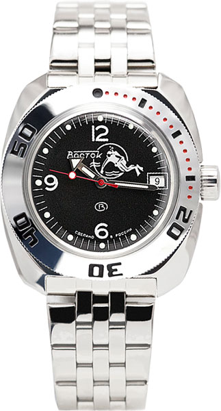 Часы со спортивным дизайном для сильных мужчин. Они не подведут даже в самых экстремальных условиях. Амфибия Классика. В механизме 31 камень, частота 19800 полуколебаний в час. Запас хода 31 час. Противоударное устройство оси баланса. Браслет с раскладывающейся застежкой. Производитель оставляет за собой право вносить изменения во внешний вид часов.