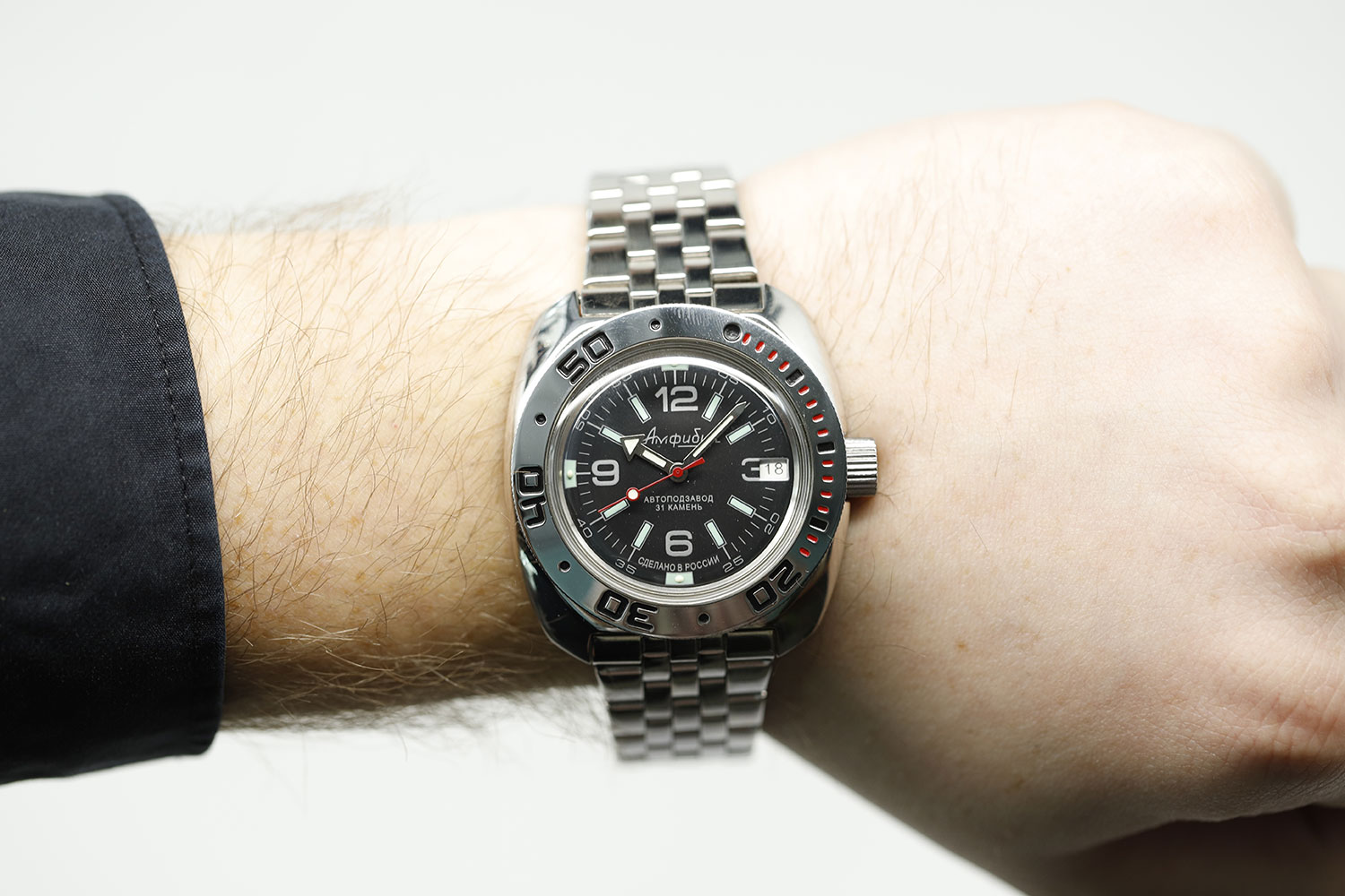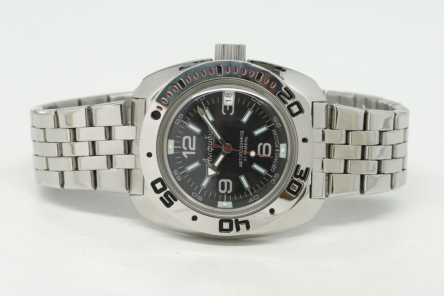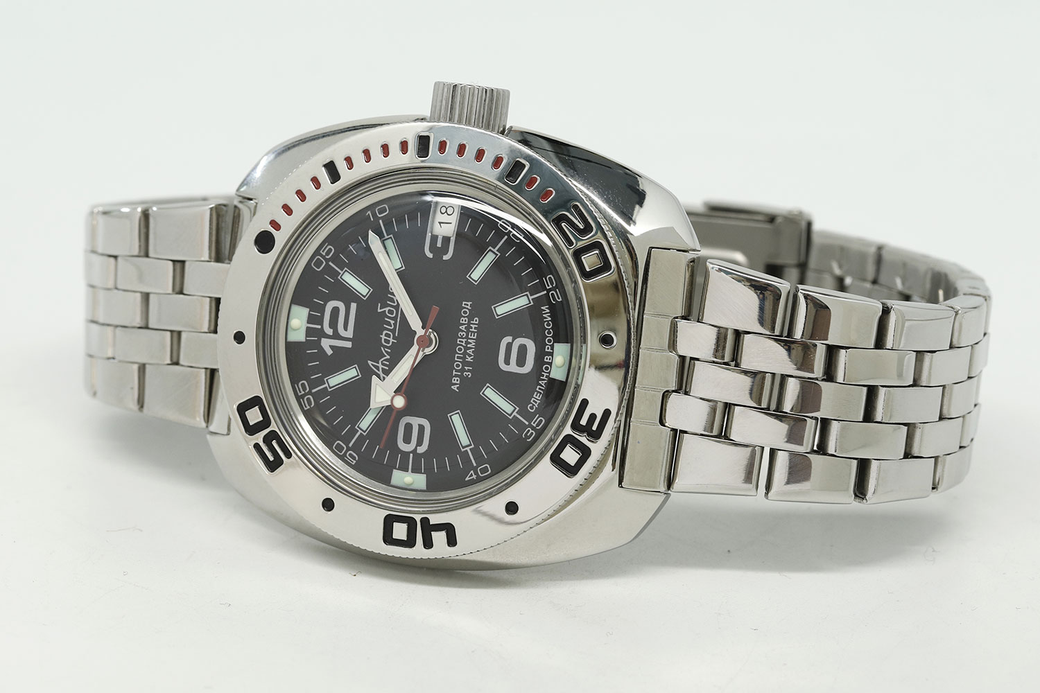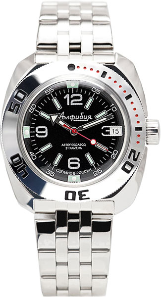 Эти практичные часы великолепно сидят на руке и позволят вам чувствовать себя уверенно в любой обстановке. Амфибия Классика. В механизме 31 камень, частота 19800 полуколебаний в час. Запас хода 31 час. Противоударное устройство оси баланса. Браслет с раскладывающейся застежкой. Производитель оставляет за собой право вносить изменения во внешний вид часов.