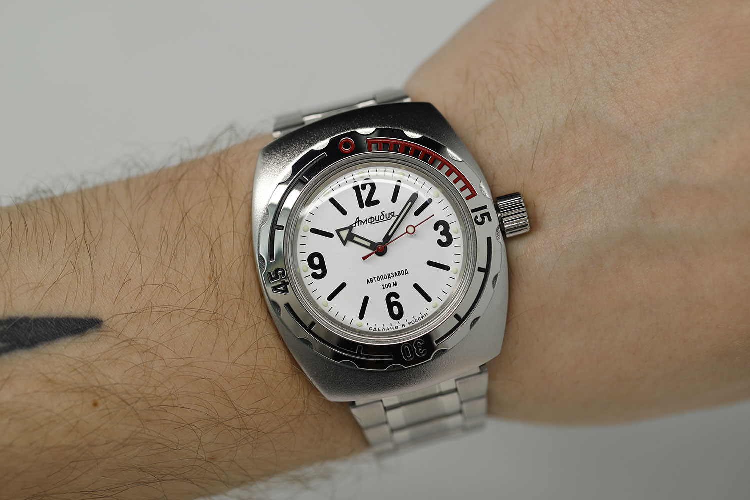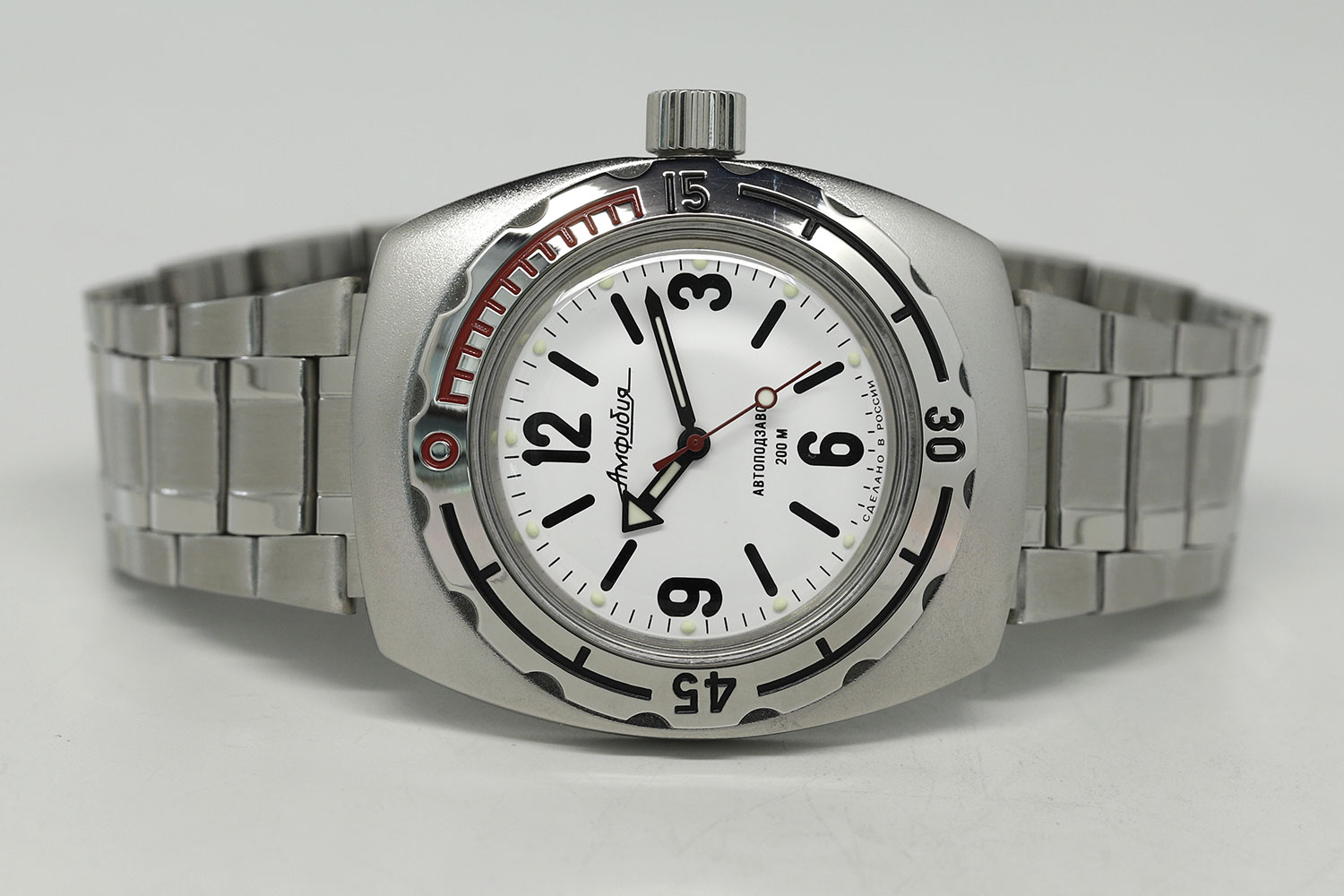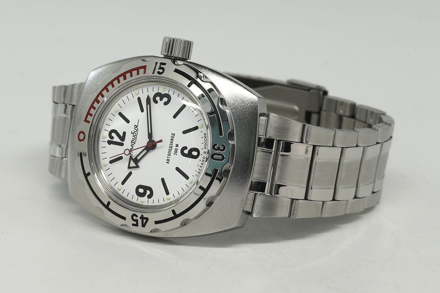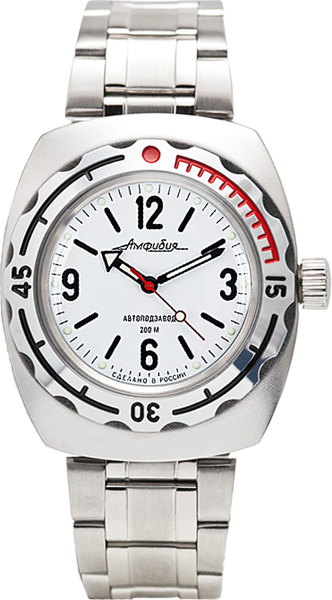 Часы со спортивным дизайном для сильных мужчин. Они не подведут даже в самых экстремальных условиях. Амфибия Классика. В механизме 31 камень, частота 19800 полуколебаний в час. Запас хода 31 час. Противоударное устройство оси баланса. Браслет с раскладывающейся застежкой. Производитель оставляет за собой право вносить изменения во внешний вид часов.