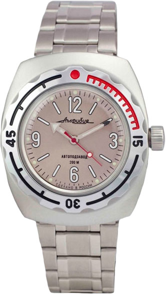 Механические часы с автоподзаводом и высокой водозащитой станут лучшим спутником дайвера как в воде, так и на суше. Амфибия Классика. В механизме 31 камень, частота 19800 полуколебаний в час. Запас хода 31 час. Противоударное устройство оси баланса. Браслет с раскладывающейся застежкой. Производитель оставляет за собой право вносить изменения во внешний вид часов.