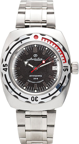 Эти практичные часы великолепно сидят на руке и позволят вам чувствовать себя уверенно в любой обстановке. Амфибия Классика. В механизме 31 камень, частота 19800 полуколебаний в час. Запас хода 31 час. Противоударное устройство оси баланса. Браслет с раскладывающейся застежкой. Производитель оставляет за собой право вносить изменения во внешний вид часов.