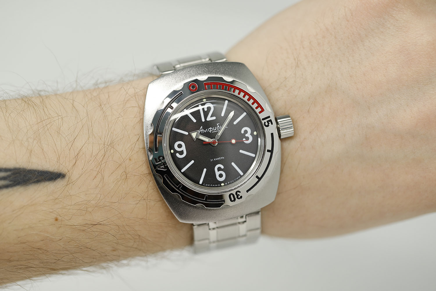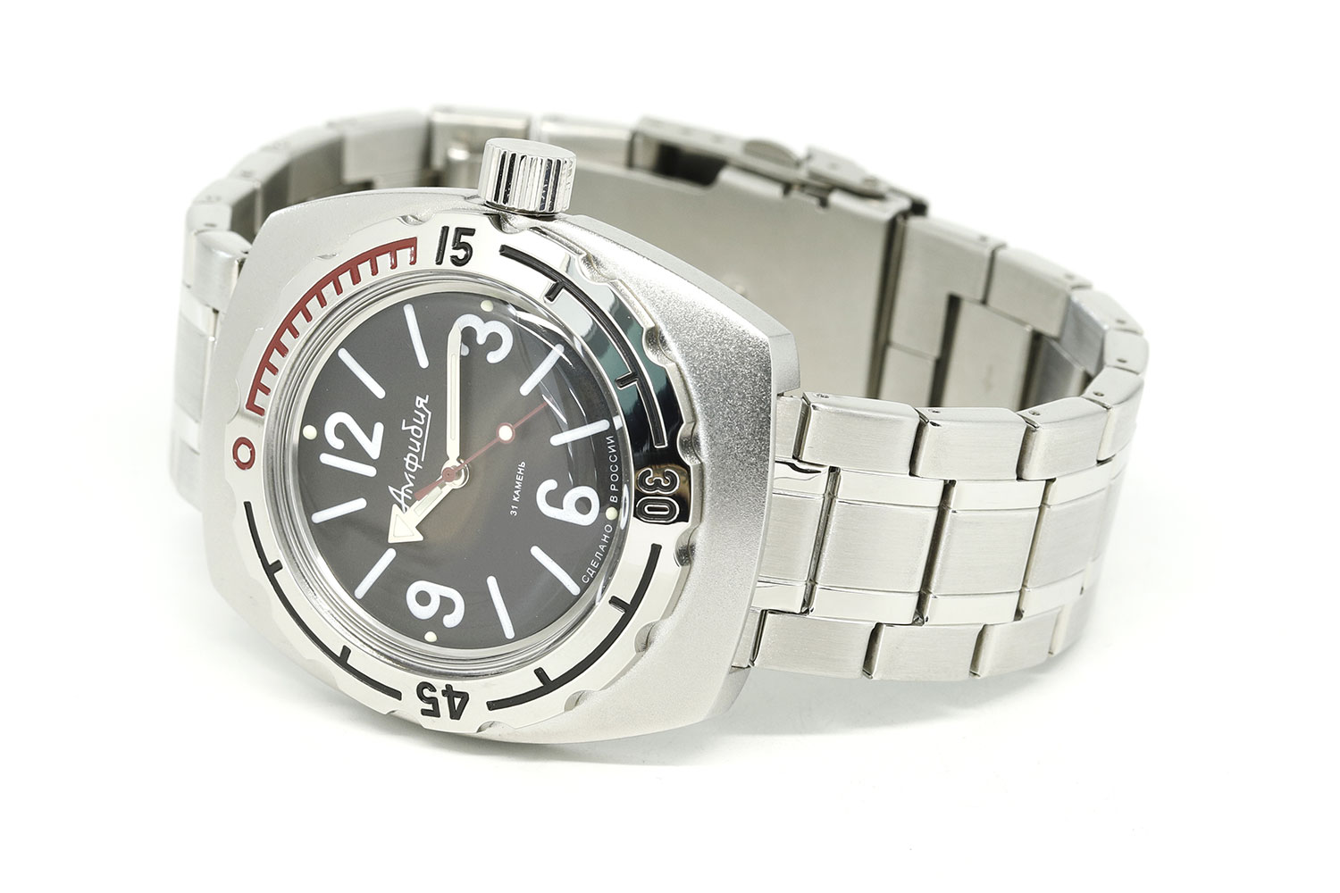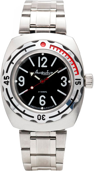 Отечественные часы, прошедшие проверку временем, для ценителей комфорта и практичности. Амфибия Классика. В механизме 31 камень, частота 19800 полуколебаний в час. Запас хода 31 час. Стекло выполнено из органического стекла. Противоударное устройство оси баланса. Производитель оставляет за собой право вносить изменения во внешний вид часов.