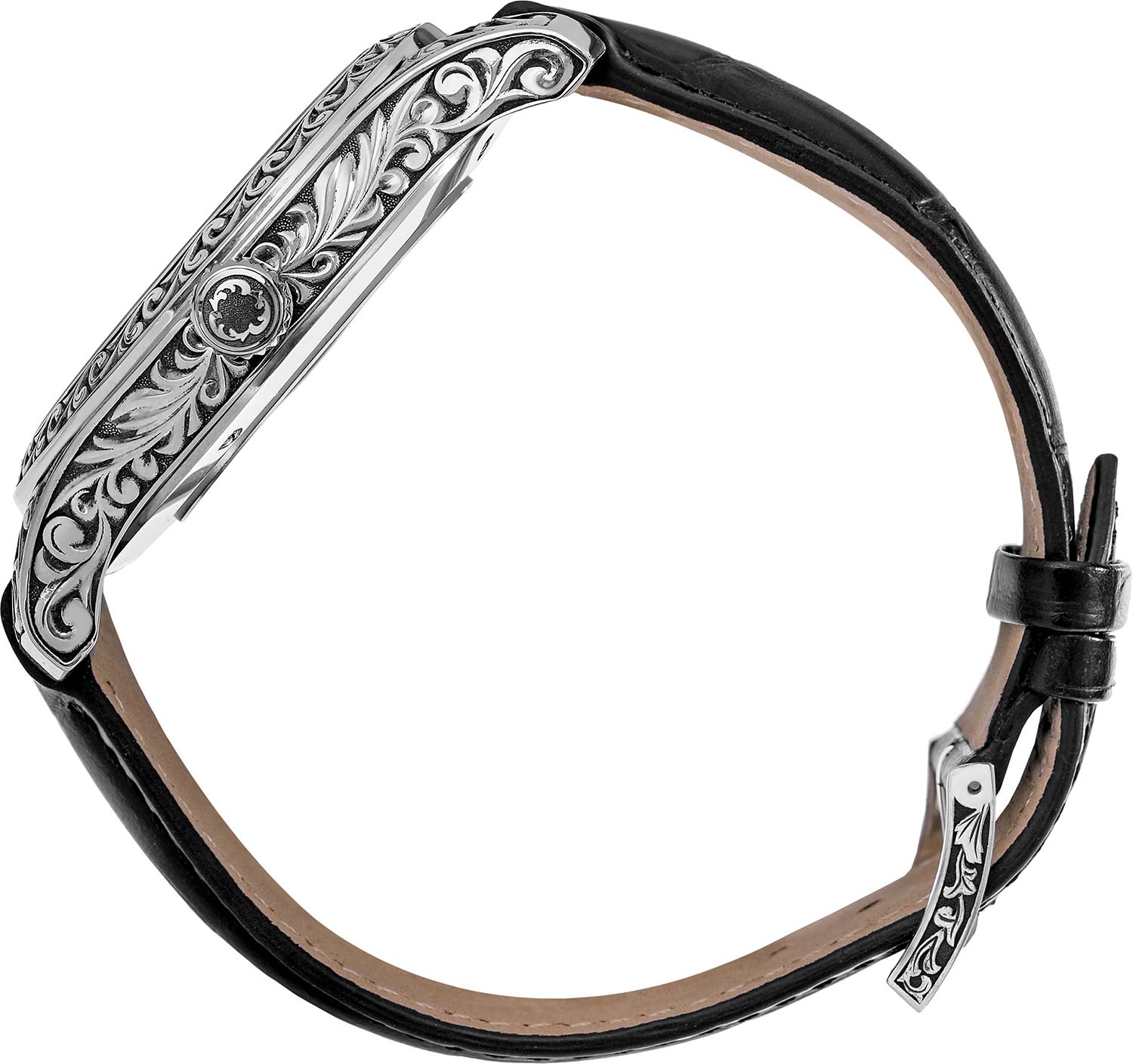 Безупречный дизайн этих часов из фактурного серебра придется по вкусу мужчинам, знающих толк в уникальных аксессуарах. Imperial. Механические часы. Сквозь прозрачное окошко на циферблате можно наблюдать за работой механизма часов. Секундная стрелка вынесена на отдельный циферблат. Метки в виде штрихов. Корпус часов украшен гравировкой. Прозрачная задняя крышка. Рифленая заводная головка. Кожаный ремешок с классической застежкой. Производитель оставляет за собой право вносить изменения во внешний вид часов.