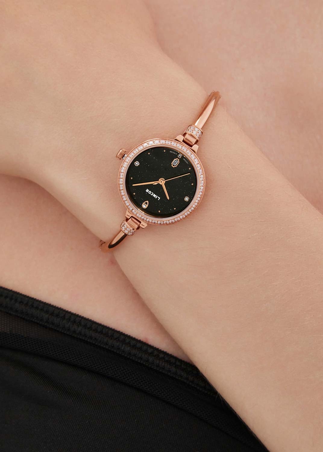 - Камень-вставкаЦиферблат, корпус и браслет украшены кристаллами