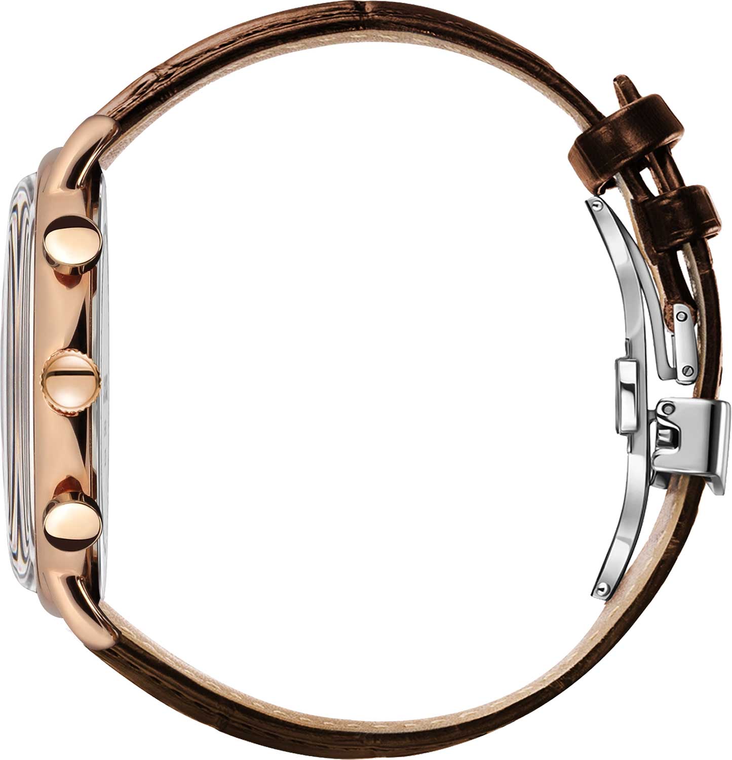 Лаконичный дизайн этих стильных часов позволит носить их в любой обстановке. Часы-хронограф с секундомером. Циферблат с метками в виде арабских цифр выполнен по технологии Sunray (солнечные лучи). Окошко даты находится в положении 3 часа. Рифленая заводная головка. Ремешок с раскладывающейся застежкой.