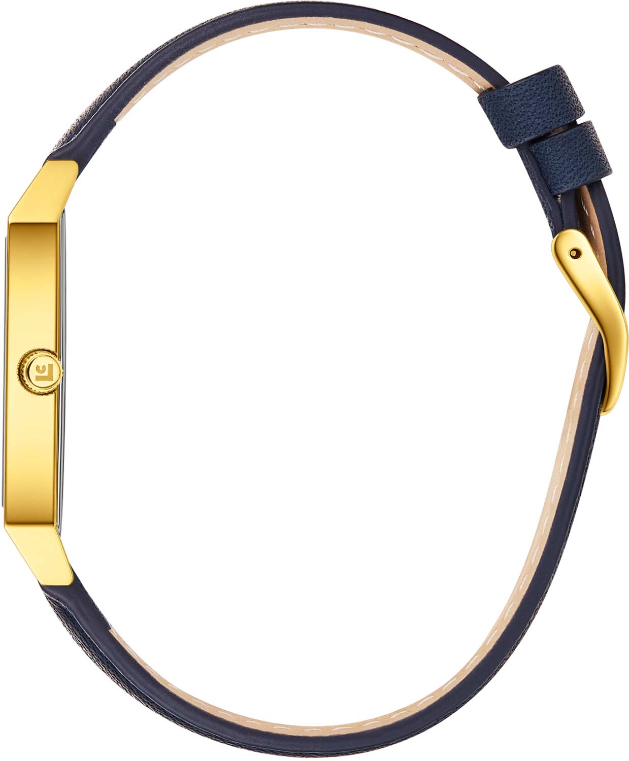 Женские наручные часы. Прямоугольный стальной корпус. Гильошированный циферблат защищен прочным сапфировым стеклом. Метки в виде арабских цифр.