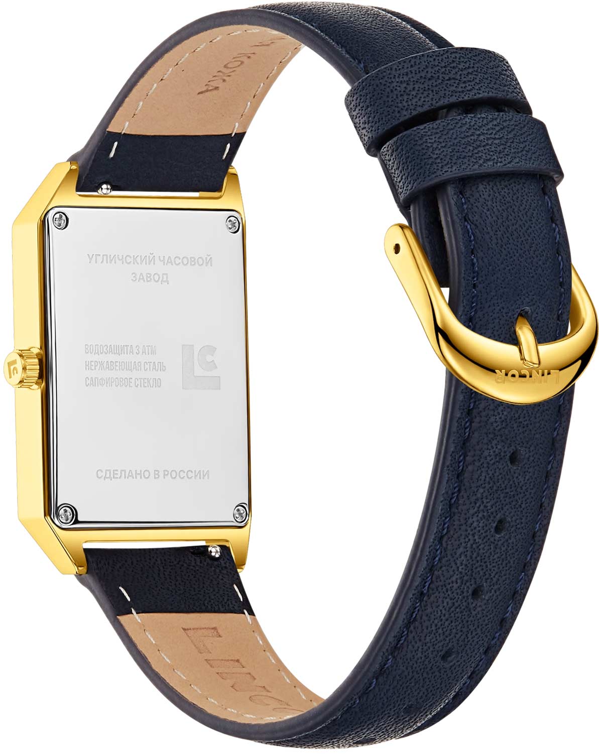 Рифленая заводная головка. Задняя крышка крепится на 4 винтах. Удобный кожаный ремешок с классической застежкой.