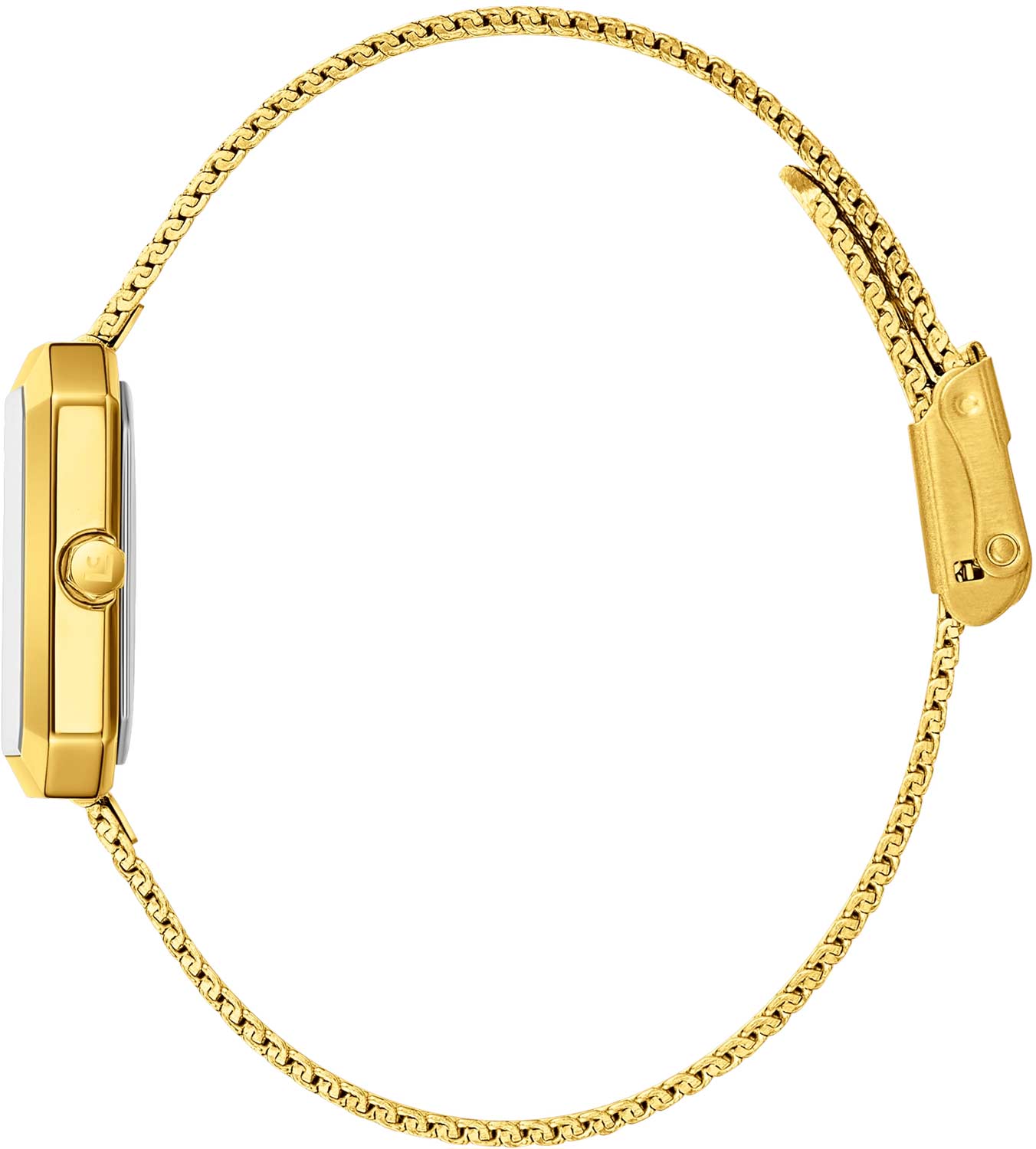 Шестигранная заводная головка. Стальной браслет миланского плетения с возможностью регулировки длины.