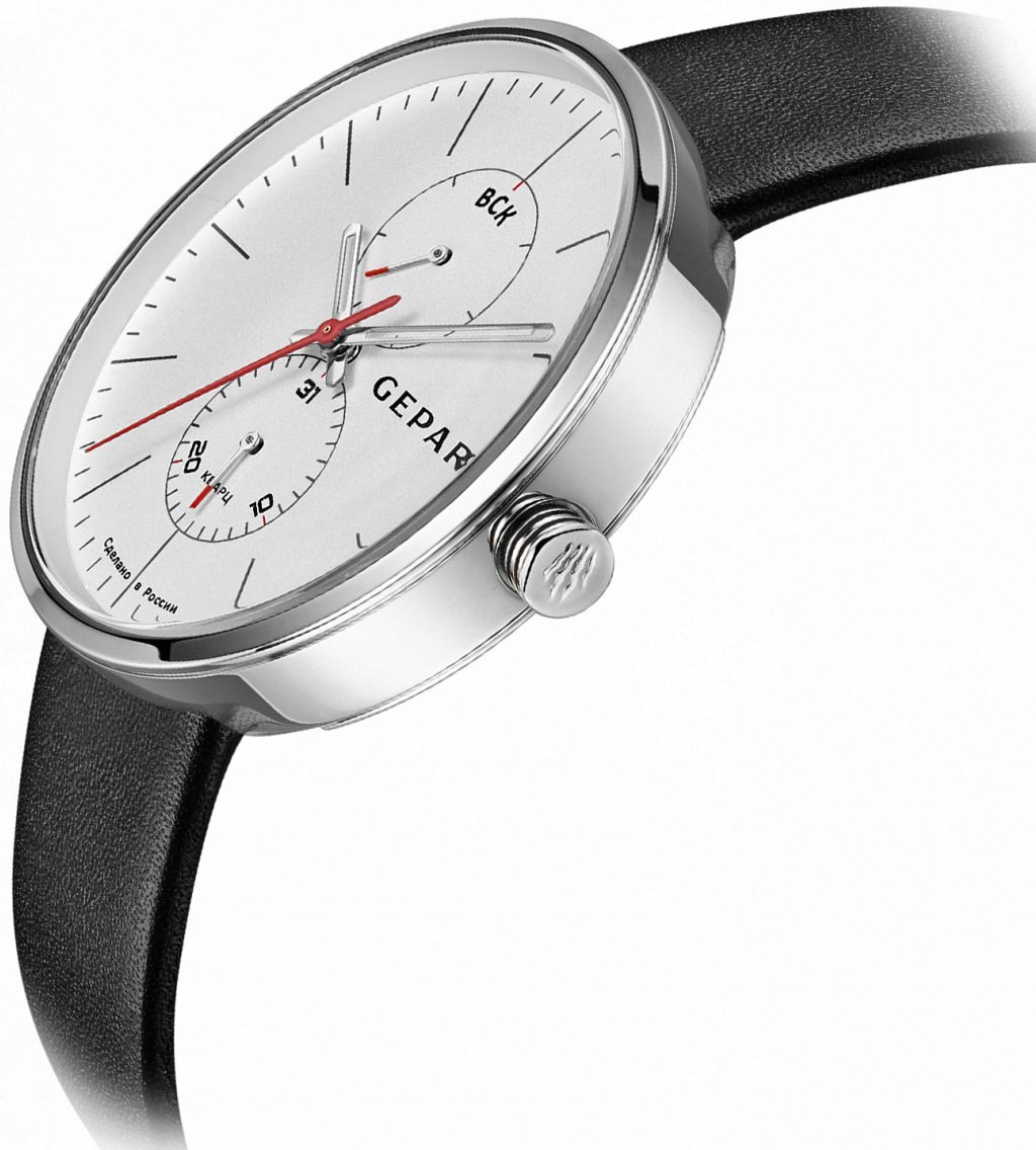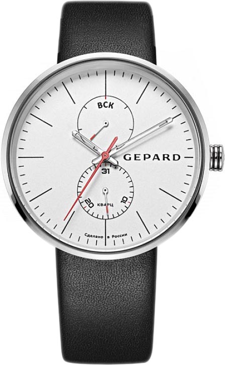 Наручные мужские часы, которые оценят те, кто знает толк в стильных аксессуарах. Gepard. Мужские часы. Дата и день недели вынесены на отдельные циферблаты. Циферблат с метками в виде штрихов. Круглый корпус. Стальная задняя крышка крепится на 4-х винтах. Ремешок с классической застежкой.