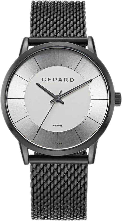 Gepard. Мужские часы с японским механизмом. Метки в виде штрихов. Рифленая заводная головка. Браслет миланского плетения.
