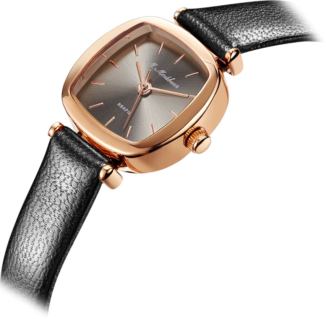 С первого взгляда привлекает внимание миниатюрный квадратный корпус и тонкий ремешок. Эти часы покорят вас своим исполнением. Женские часы с японским механизмом. Циферблат с метками в виде штрихов выполнен по технологии Sunray (солнечные лучи). Рифленая заводная головка. Ремешок с классической застежкой.