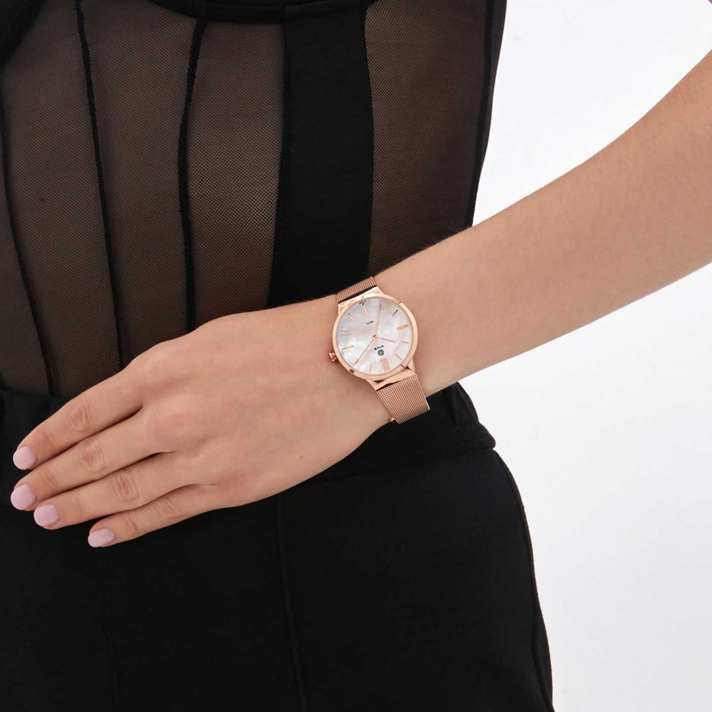 Элегантный дизайн этих часов подчеркнет безупречное чувство вкуса любой девушки. Женские часы с круглым корпусом. Перламутровый циферблат с метками в виде штрихов. Браслет миланского плетения с регулируемой застежкой.