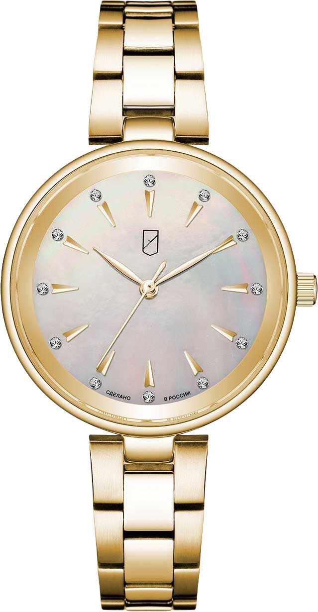 Часы со стальным браслетом и лаконичным корпусом с перламутровым циферблатом — модный аксессуар в образе девушки. Женские часы с японским механизмом. Перламутровый циферблат с метками в виде точек и штрихов. Рифленая заводная головка. Браслет с раскладывающейся застежкой.