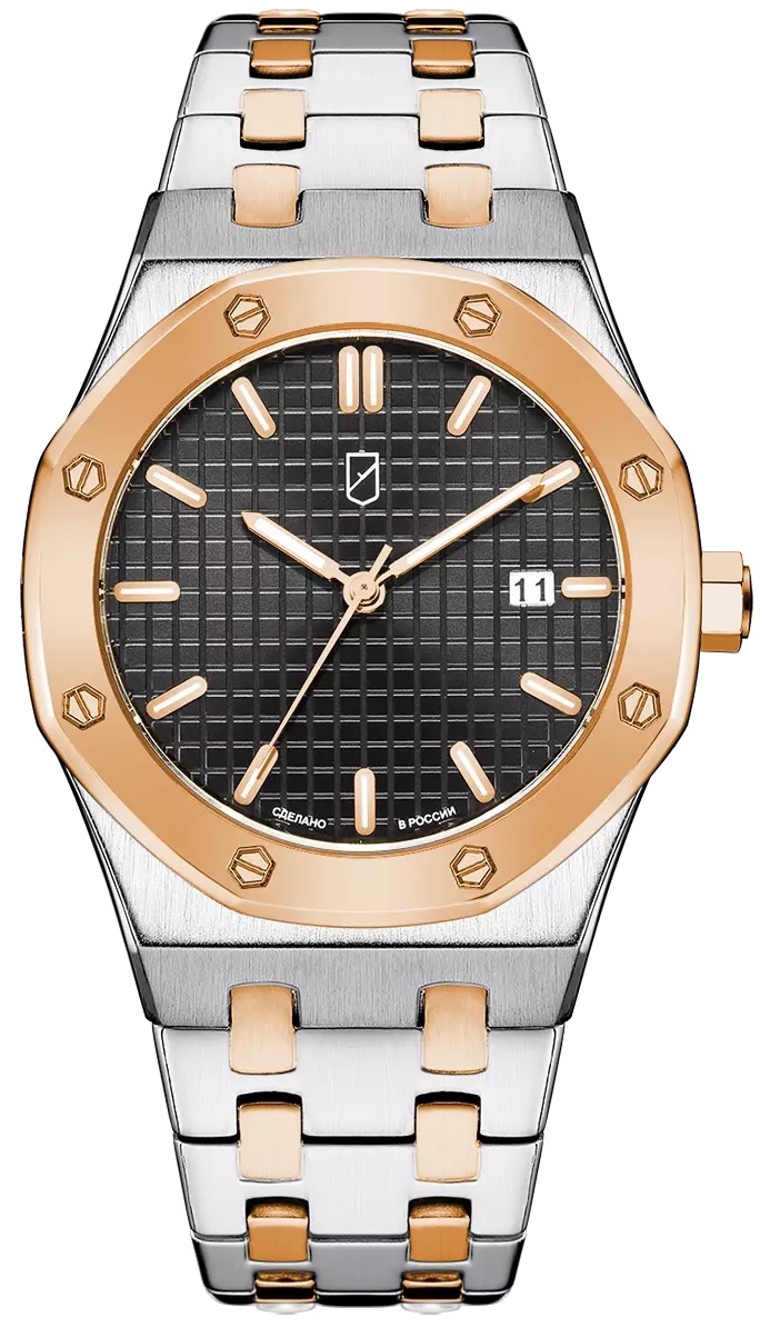 Наручные мужские часы, которые оценят те, кто знает толк в стильных аксессуарах. Мужские кварцевые часы. Циферблат украшен узором с метками в виде штрихов. Окошко даты. Рифленая заводная головка. Стальной браслет.