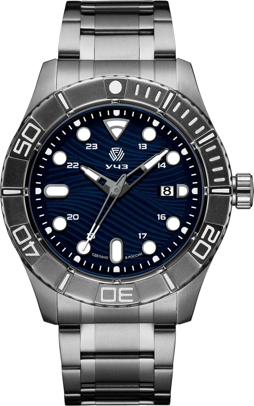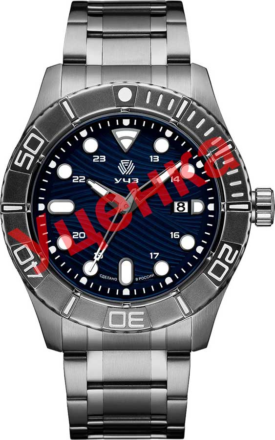 Мужские кварцевые часы. Круглый стальной корпус с черным IP покрытием. Циферблат с рельефным рисунком защищен минеральным закаленным стеклом. Метки в виде штрихов и точек. Люминесцентные стрелки и метки. 12-ти и 24-х часовой формат времени. Окошко даты находится в положении 3 часа. Рифленая заводная головка. Стальной браслет с черным IP покрытием и застежкой-бабочкой.