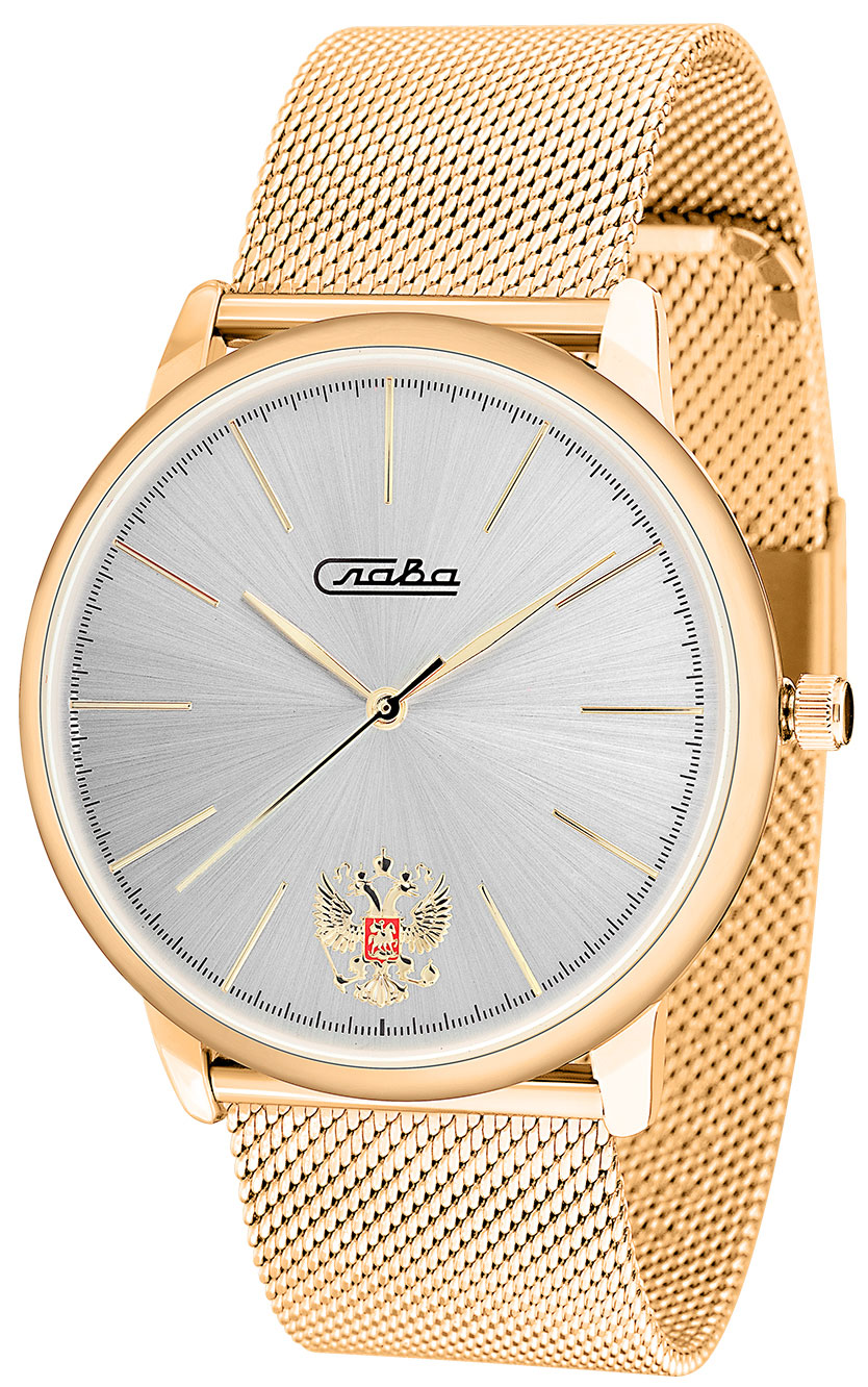 Популярные мужские отечественные часы в золотом стиле без чрезмерной вычурности. Традиция. Циферблат выполнен по технологии Sunray (солнечные лучи). Круглый корпус с задней крышкой из нержавеющей стали. Браслет миланского плетения.