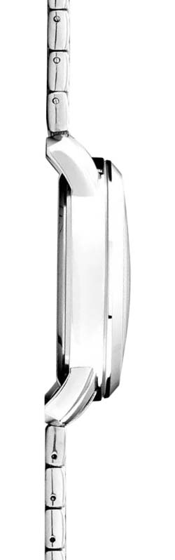 Традиция. Метки в виде римских цифр. Число и день недели отображаются на отдельных циферблатах. 12-ти и 24-х часовой формат времени. Заводная головка с защитой. Браслет с раскладывающейся застежкой.