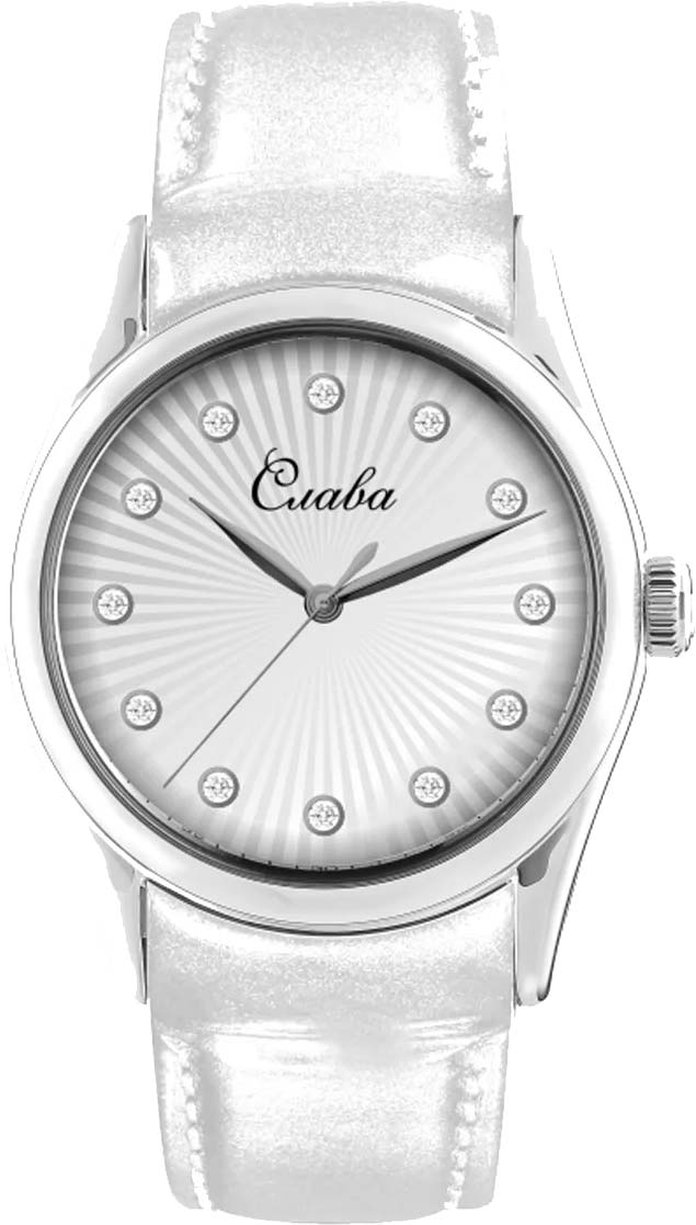 Сенат. Женские наручные часы. Стальной круглый корпус. Циферблат защищен прочным сапфировым стеклом. Листовидные стрелки в стиле Feuille. Метки в виде точек, украшенных цирконовыми кристаллами. Рифленая заводная головка. Удобный ремешок из натуральной кожи с классической застежкой.