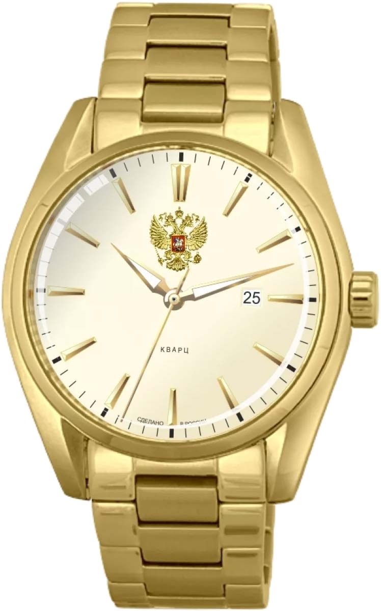 Традиция. Мужские наручные часы. Круглый латунный корпус. Циферблат выполнен по технологии Sunray (солнечные лучи) с накладными метками в виде штрихов. Острые стрелки в стиле Alpha. Окошко даты находится на отметке 3 часа. Рифленая заводная головка. Задняя крышка из нержавеющей стали. Надежный стальной браслет с раскладывающейся застежкой.