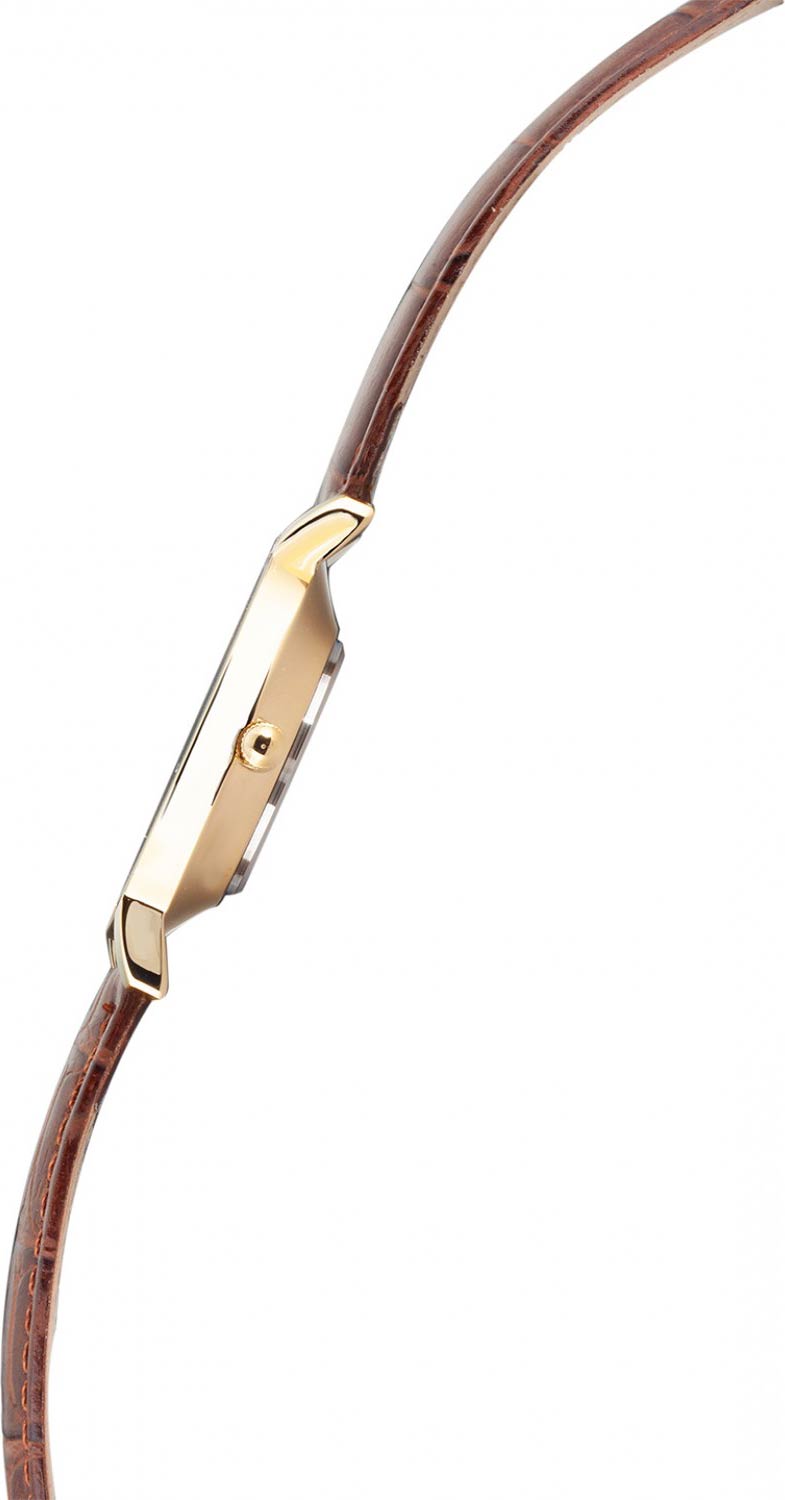 Удобные и надежные часы с кожаным ремешком отлично подойдут для повседневного ношения. Циферблат с метками в виде римских цифр. Круглый корпус. Безель украшен паве из кристаллов. Кожаный ремешок с классической застежкой.