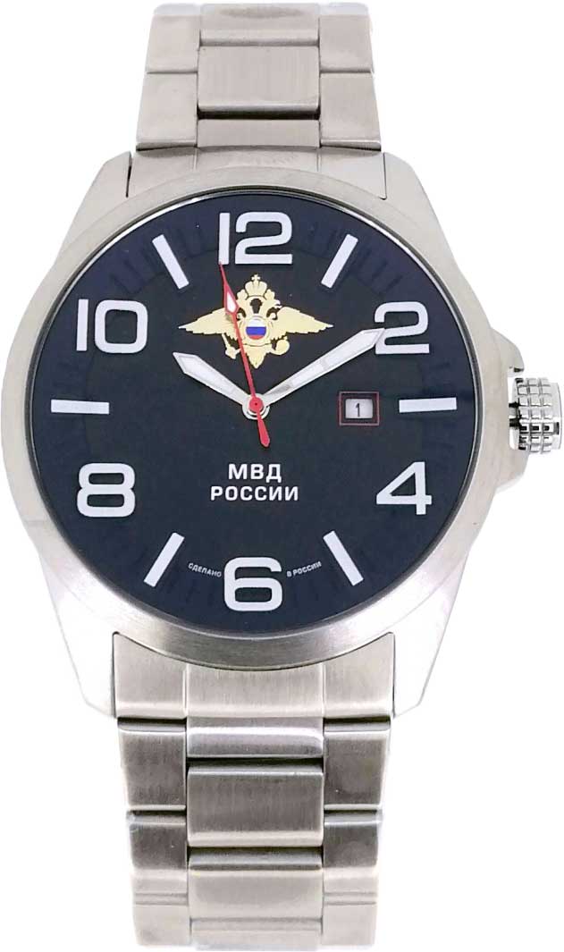 Часы с легкочитаемым циферблатом отлично подойдут для повседневного общения со временем. Мужские часы, в разработке которых учавствовал летчик-космонавт Владимир Джанибеков и бойцы подразделения ФСБ Группа «А» («Альфа»). Циферблат с метками в виде штрихов и арабских цифр украшен символикой МВД России. Окошко даты находится в положении 3 часа. Заводная головка с защитой. Браслет с раскладывающейся застежкой.