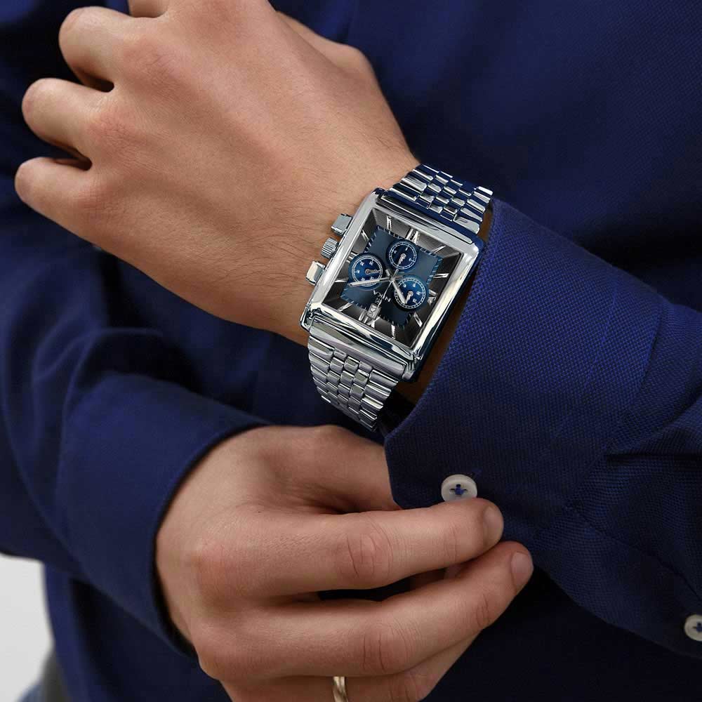Статусный аксессуар с классическими чертами — незаменимый атрибут успешных людей. Обновленный дизайн популярной коллекции Celebrity. Респектабельные часы-хронограф с секундомером. Квадратный корпус из серебра. Двухуровневый циферблат защищен минеральным стеклом. Метки в виде римских цифр и штрихов. Окошко даты находится в положении 12 часов. Рифленая заводная головка. Утяжеленный серебряный браслет не перекручивается и не деформируется, а благодаря его широким звеньям часы плотно и четко прилегают к руке. Производитель оставляет за собой право вносить изменения во внешний вид часов.