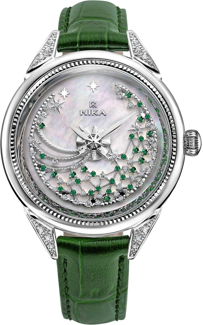 Женские наручные часы. Лимитированная серия женских часов NIKA из серебра 925 пробы, вдохновленная редким астрономическим явлением nova — моментом внезапного усиления света. 25 экземпляров. Надежный швейцарский кварцевый механизм прослужит много лет. Круглый серебряный корпус. Рифленый безель.