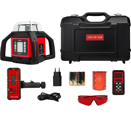 Ротационный нивелир RGK ротационный, красный луч, 900м с приемником SP-508 с автоподстройкой 727212