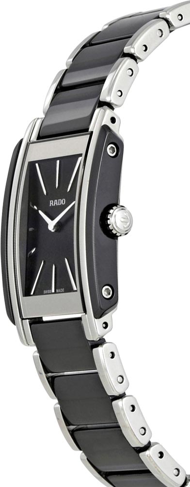 Выразительные индексы превращают минимализм циферблата в элегантный образец современного стиля. Высококачественные швейцарские женские часы. Прямоугольный стальной корпус с керамическими вставками. Накладные метки в виде штрихов. Матовый циферблат. Прямоугольные стрелки в стиле Baton. Секундная стрелка отсутствует. Рифленая заводная головка. Надежный стальной браслет с керамическими вставками. Раскладывающаяся застежка.
