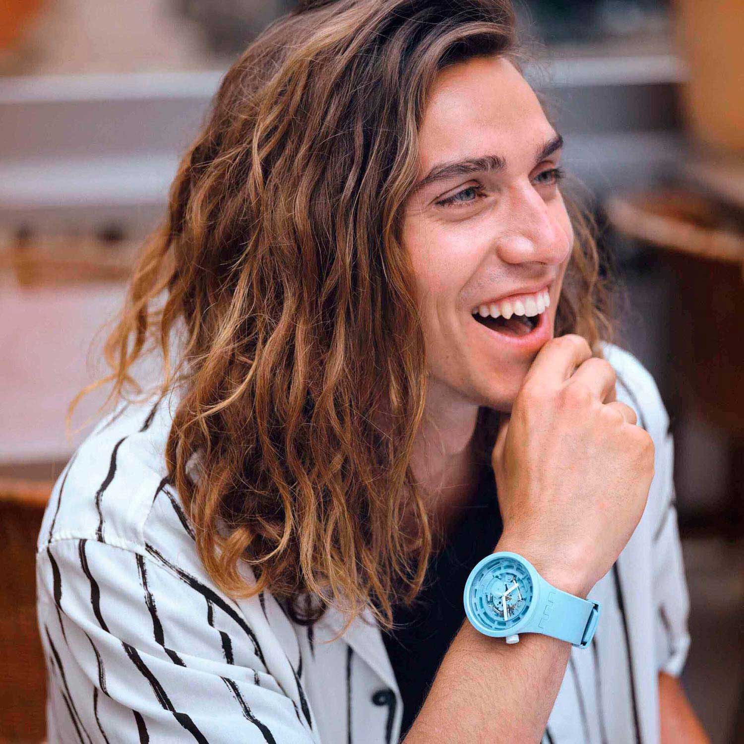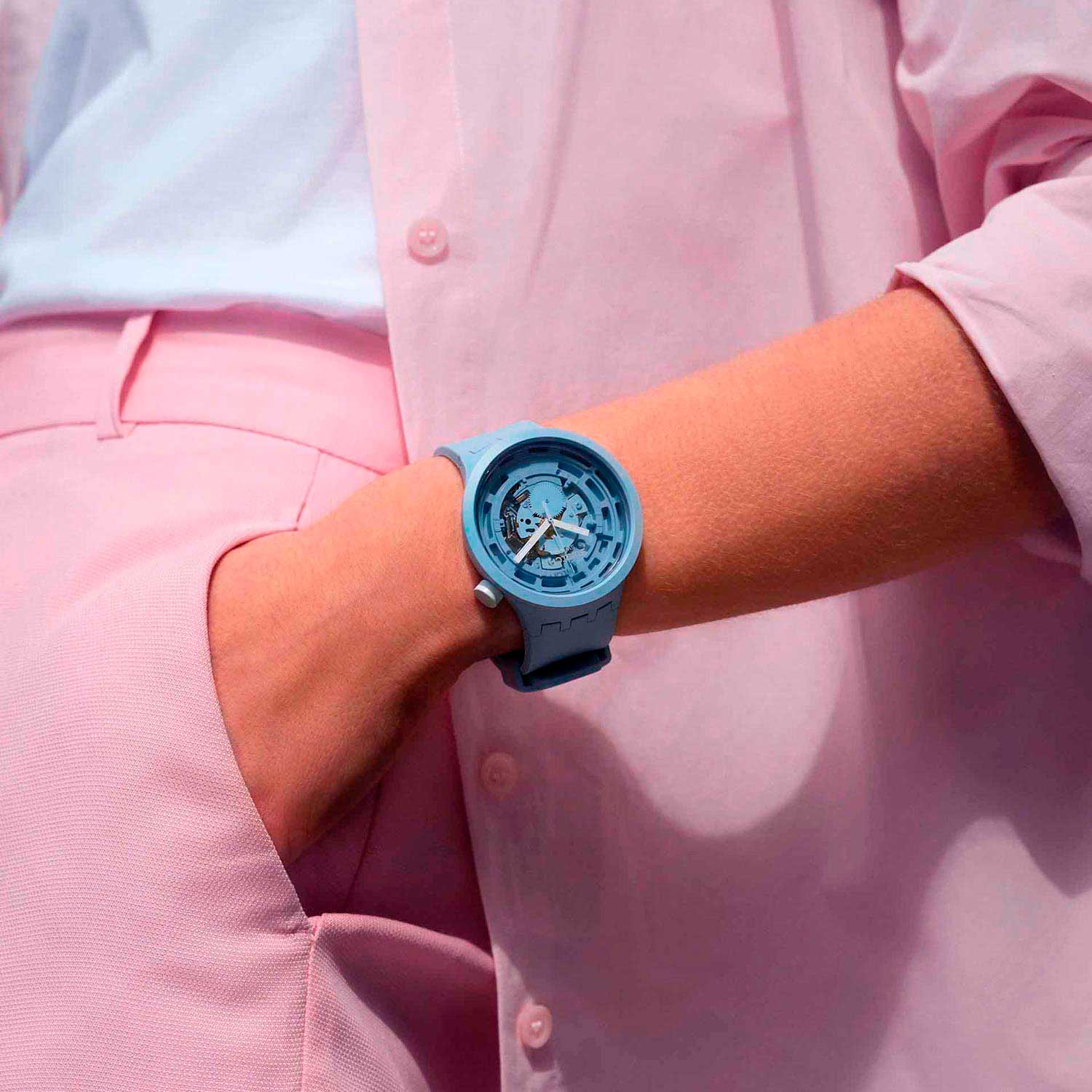 Гармоничное исполнение часов из материалов биологического происхождения - это стильный выбор, подчеркивающий вашу индивидуальность. Скелетонизированные наручные часы унисекс Big Bold Ceramic Blue. Круглый корпус из матово-голубой керамики Bioceramic. Прозрачный многоуровневый циферблат. Заводная головка находится в положении 2 часа. Ремешок с классической застежкой из алюминия.