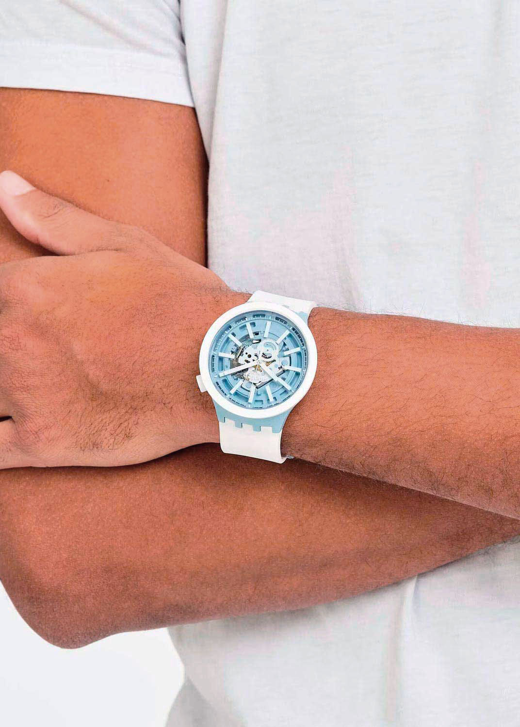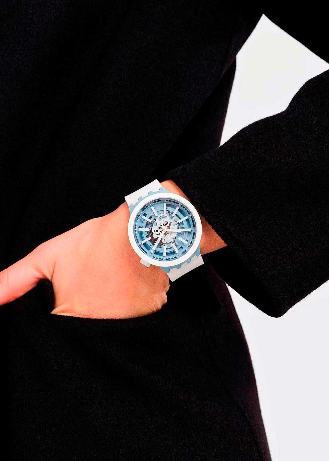 Наручные кварцевые скелетонизированные часы Whice. Модель унисекс. Круглый корпус из голубой керамики Bioceramic с белым керамическим безелем. Двухуровневый циферблат с прозрачной центральной частью. Метки в виде штрихов. Прямоугольные стрелки с люминесцентным покрытием, которое светится в темноте после непродолжительной зарядки на свету. Стекло из многослойного акрила. Заводная головка находится в положении 2 часа. Силиконовый ремешок с классической застежкой из алюминия.