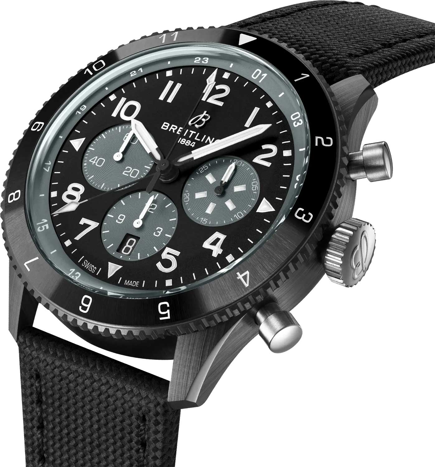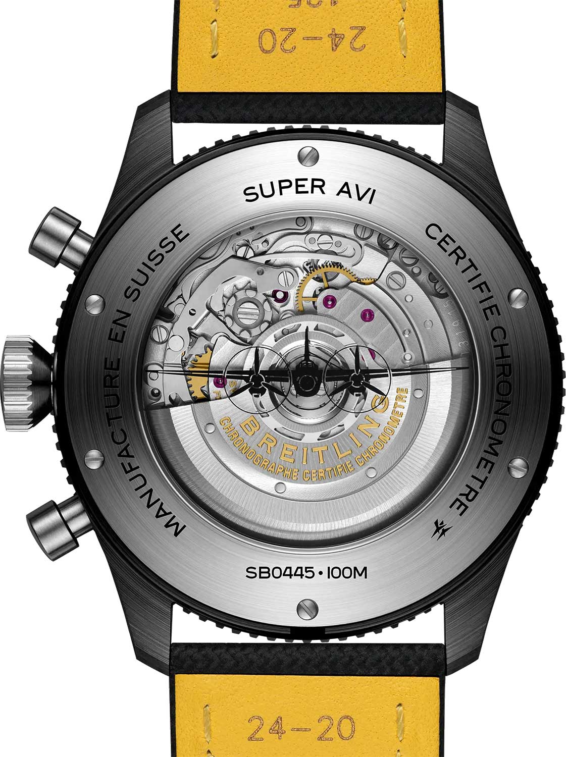 Циферблат защищен прочным сапфировым стеклом. Окошко даты находится в положении 6 часов. Кнопки хронографа, заводная головка и задняя крышка изготовлены из титана. Вращающийся безель. Заводная головка с дополнительной прокладкой. Прозрачная задняя крышка с сапфировым стеклом крепится на 6-ти винтах. Ремешок с раскладывающейся застежкой.