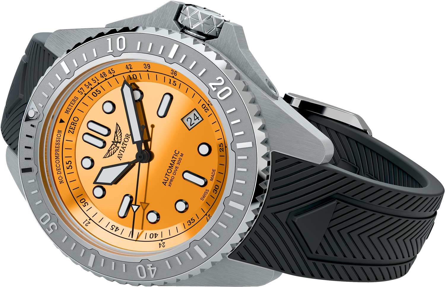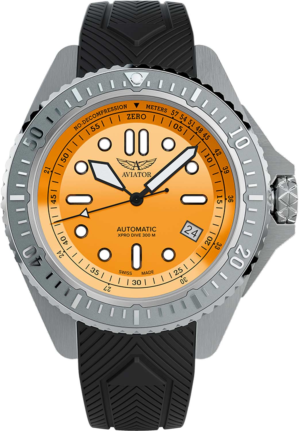 Эмалевый циферблат с метками в виде точек и штрихов. На внутреннем кольце циферблата шкала бездекомпрессионного предела, что обеспечивает повышенную безопасность и точность. Окошко даты в положении 4 часа.