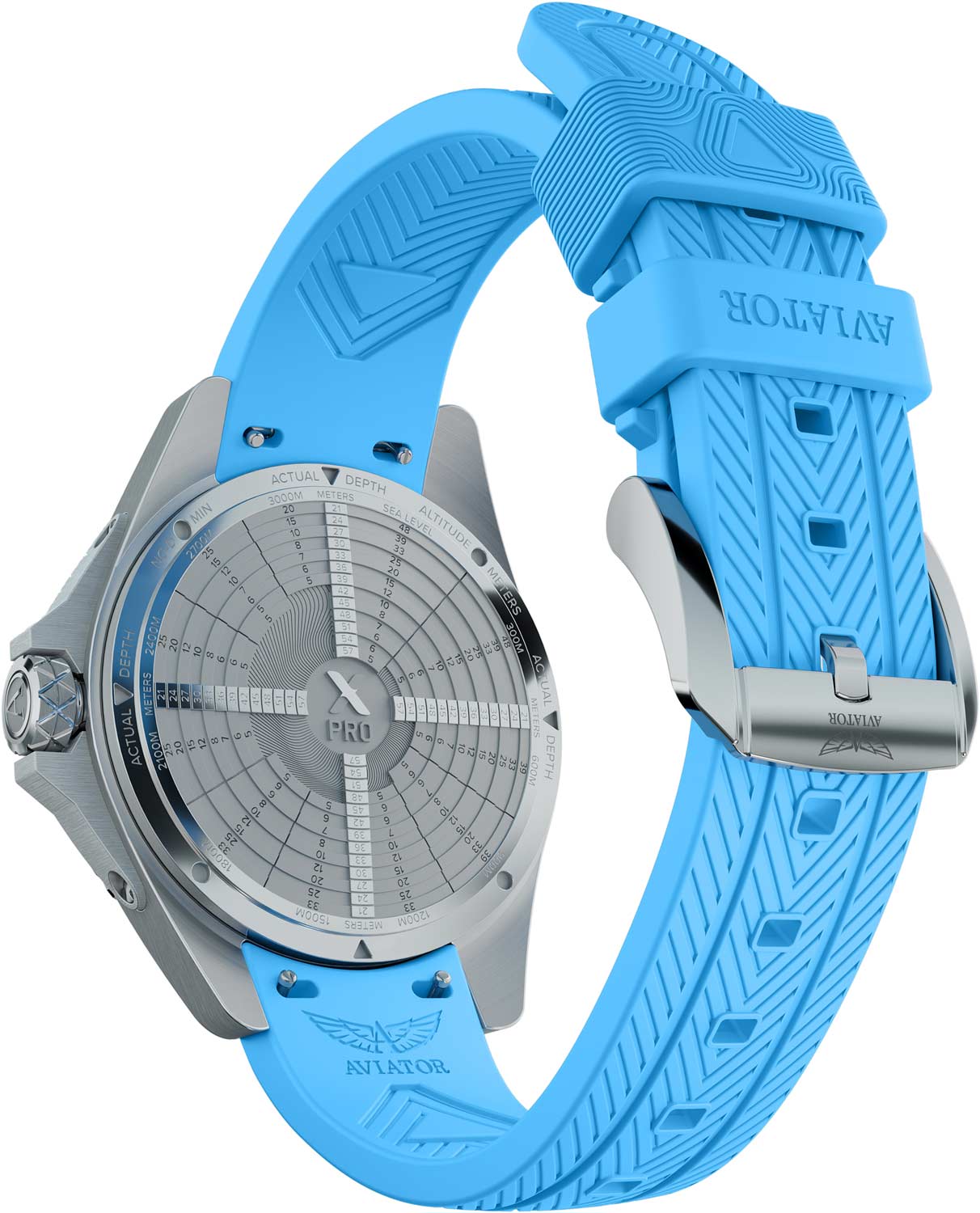 На заднюю крышку корпуса нанесена шкала. Благодаря тонкой отделке она хорошо видна и проста в использовании. На крышке приводится таблица бездекомпрессионного предела при погружении в воду на высоте – она призвана помочь дайверам рассчитать безопасное время всплытия в высокогорных озерах.