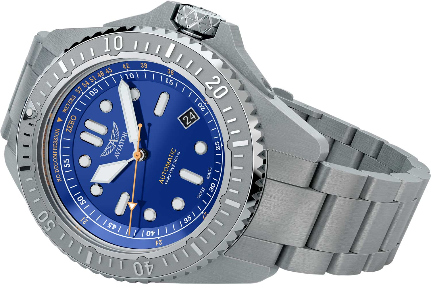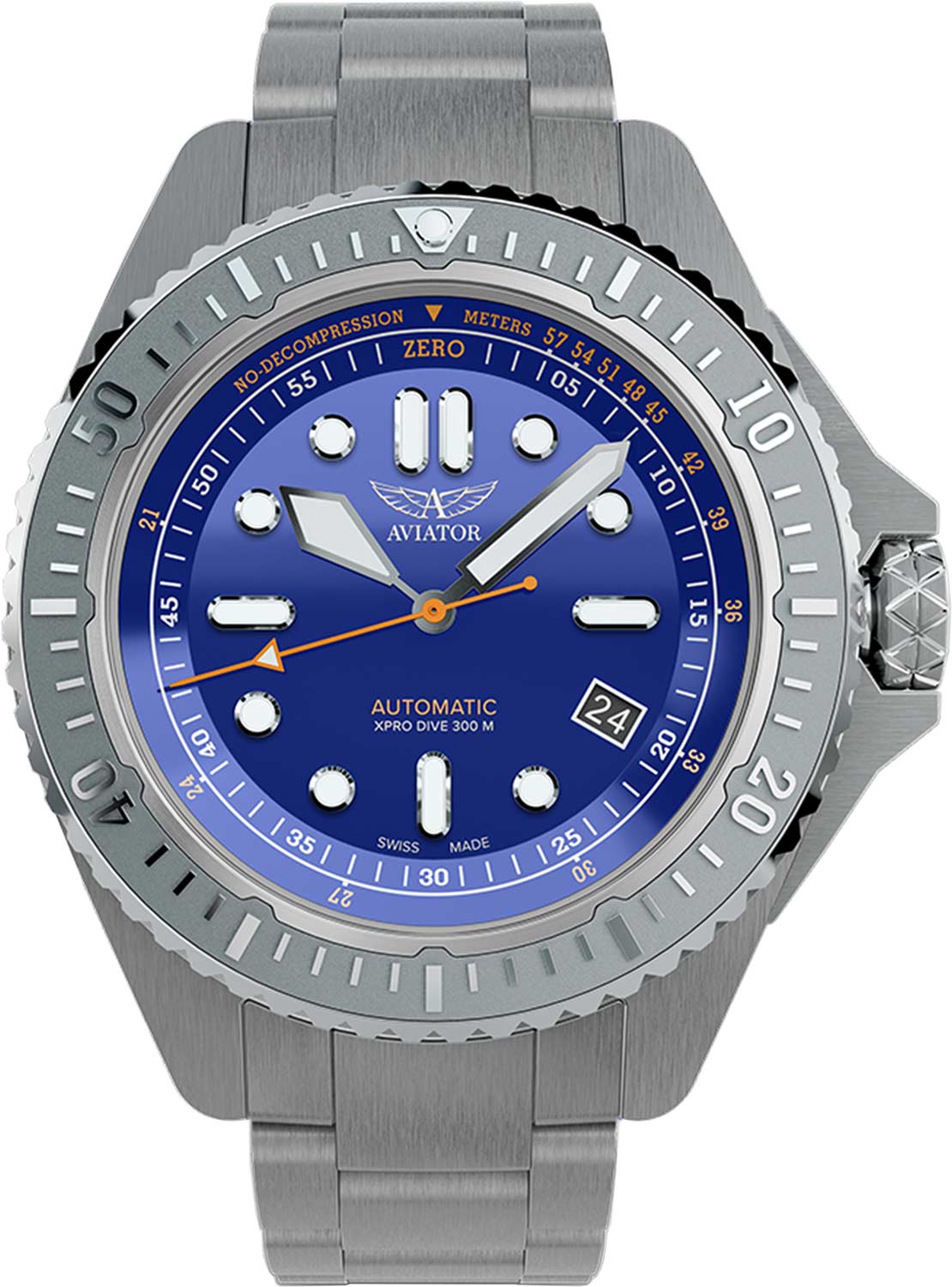 Мужские автоматические часы Xpro Dive 300 Automatic. В механизме 26 камней, частота 28800 полуколебаний в час. Запас хода до 38 часов. Эргономичный круглый стальной корпус с матовой отделкой. На безель из нержавеющей стали нанесены метки, покрытые составом LumiNova.