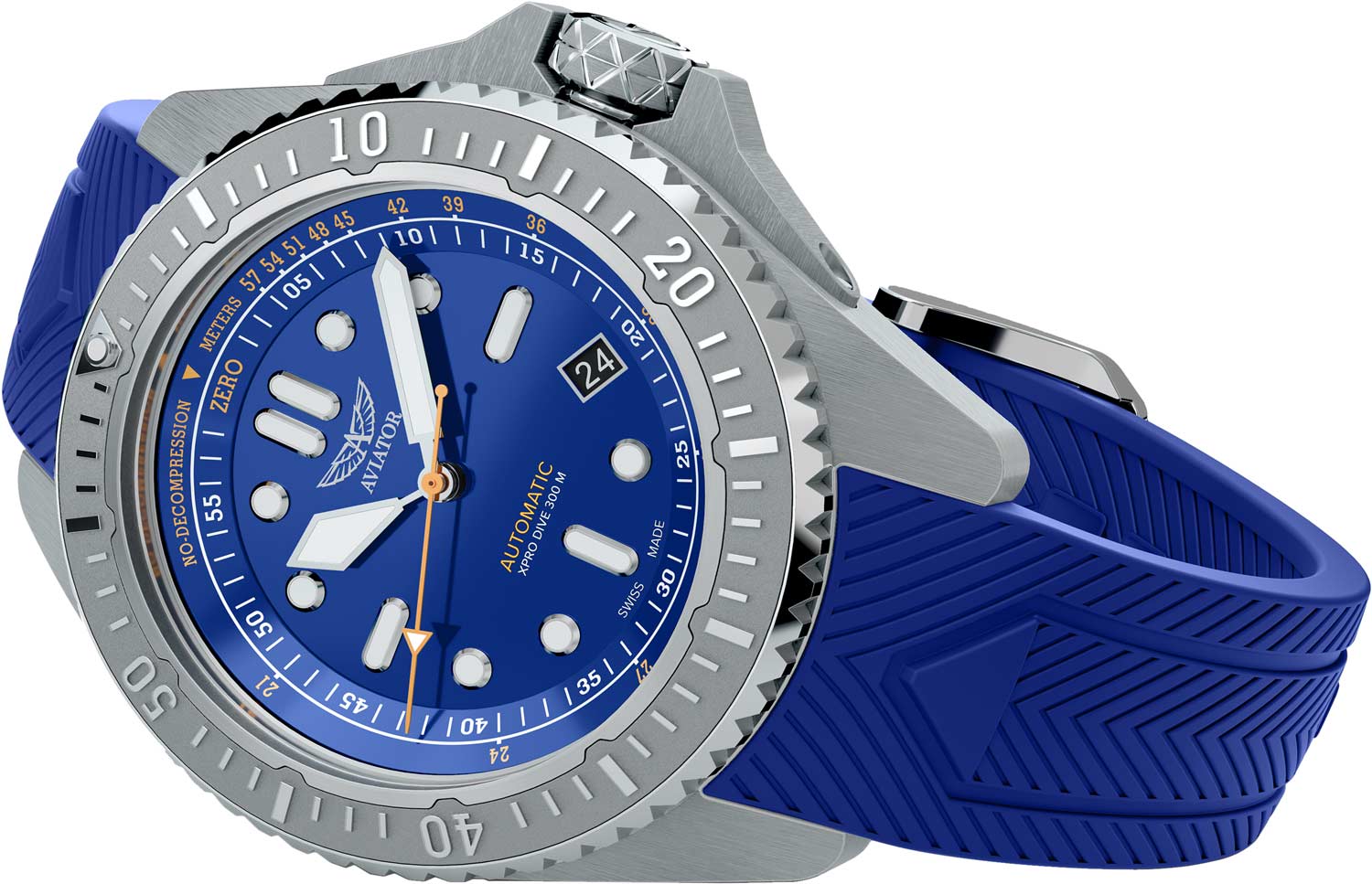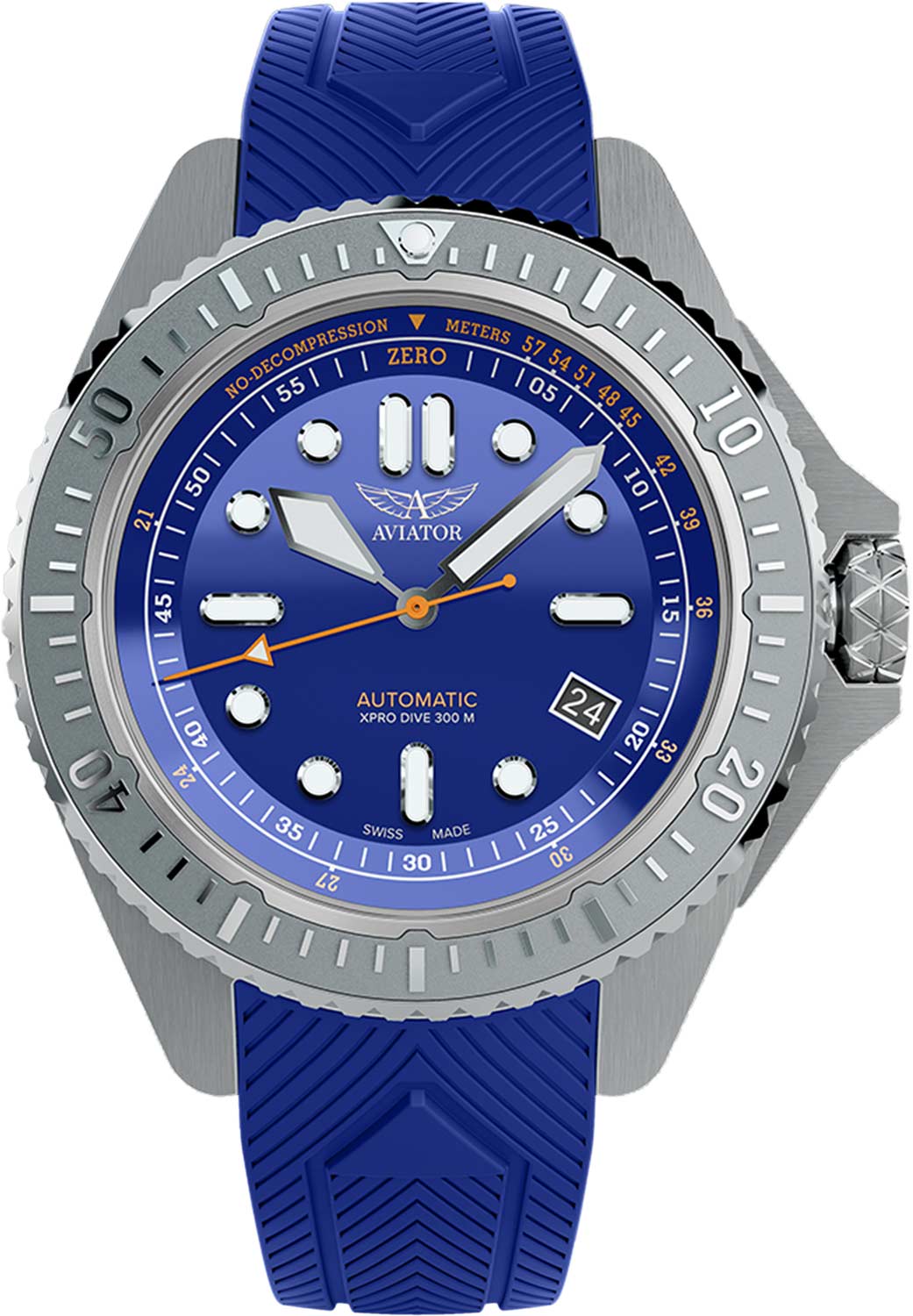 Мужские автоматические часы Xpro Dive 300 Automatic. В механизме 26 камней, частота 28800 полуколебаний в час. Запас хода до 38 часов. Эргономичный круглый стальной корпус с матовой отделкой. На безель из нержавеющей стали нанесены метки, покрытые составом LumiNova.