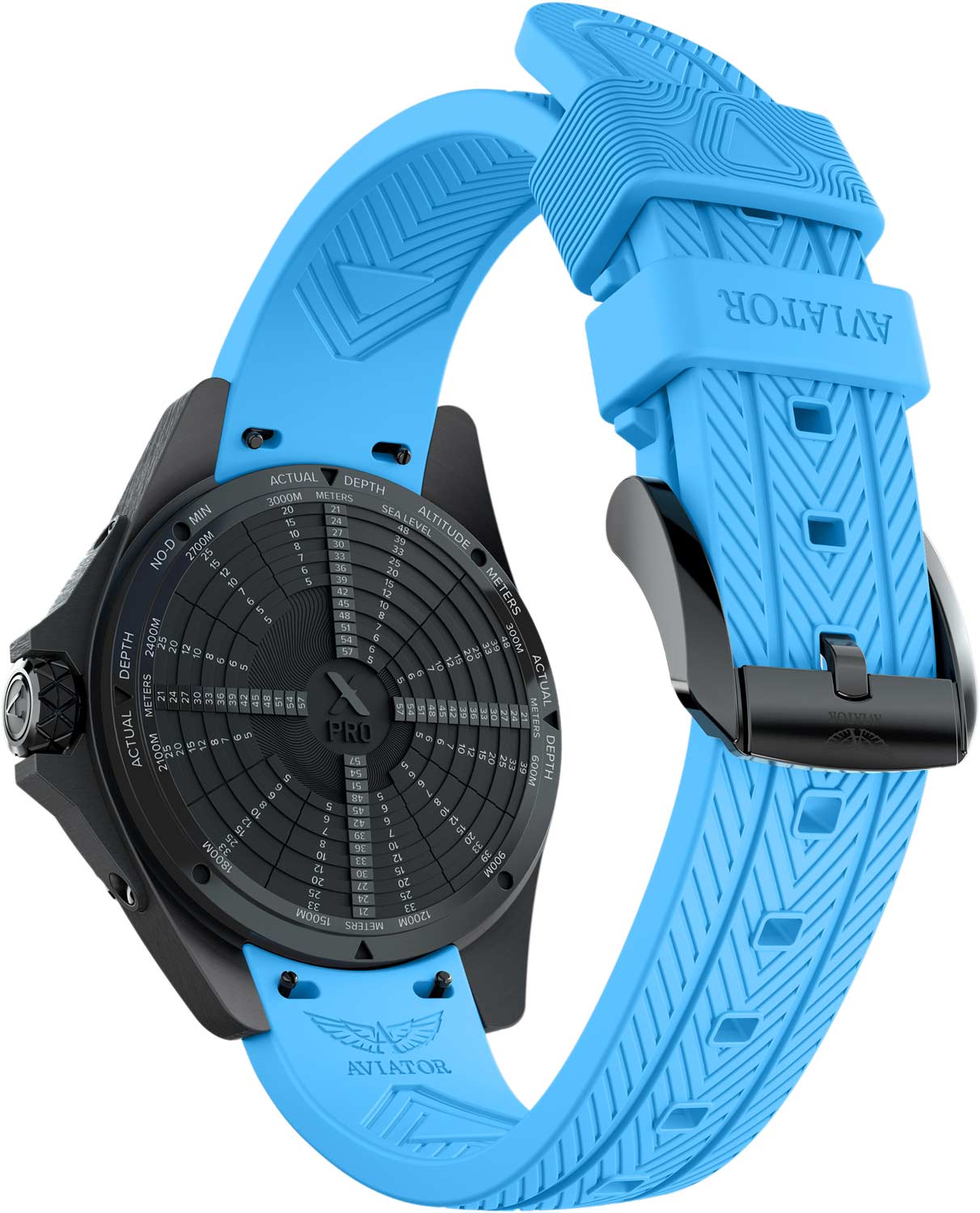 На заднюю крышку корпуса нанесена шкала. Благодаря тонкой отделке она хорошо видна и проста в использовании. На крышке приводится таблица бездекомпрессионного предела при погружении в воду на высоте – она призвана помочь дайверам рассчитать безопасное время всплытия в высокогорных озерах.