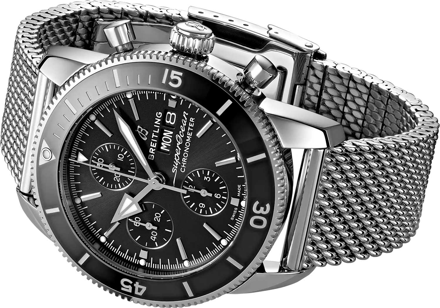 Дизайн модели вдохновлен часами SuperOcean 50-х годов. В швейцарском механизме 25 камней,частота 28800 полуколебаний в час. Запас хода примерно 48 часов. Возможность ручного завода.Хронометр сертифицирован C.O.S.C.Часы-хронограф