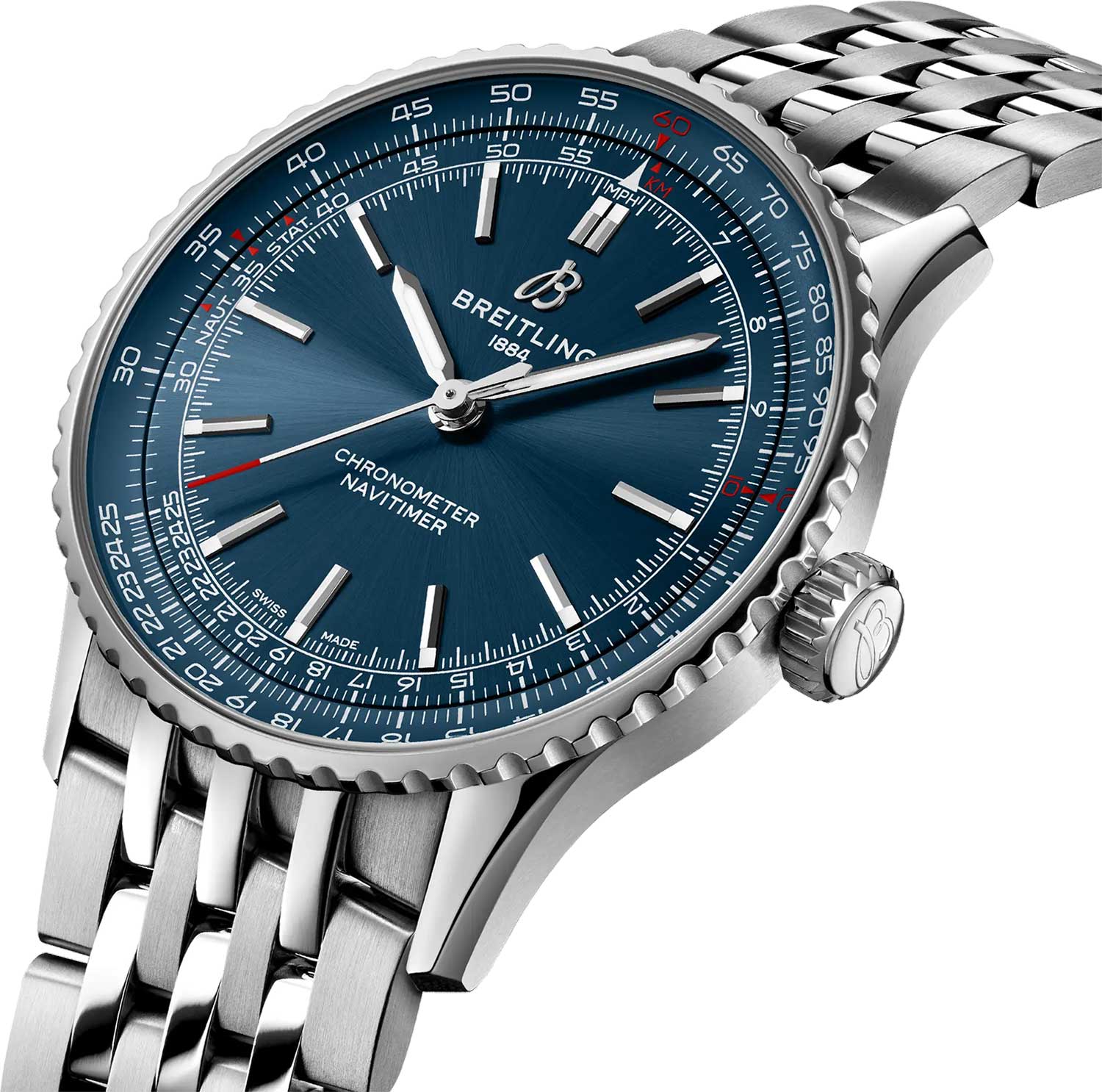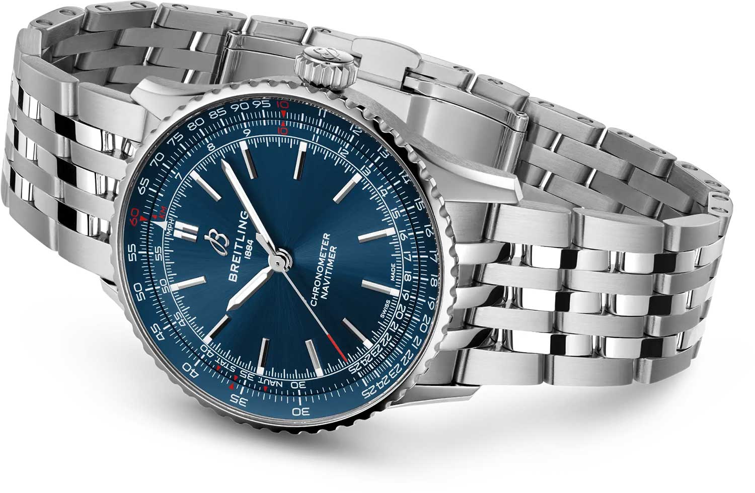 Navitimer. Мужские часы. В швейцарском механизме 25 камней, частота 28800 полуколебаний в час. Запас хода примерно 38 часов. Возможность ручного завода. Хронометр сертифицирован C.O.S.C.