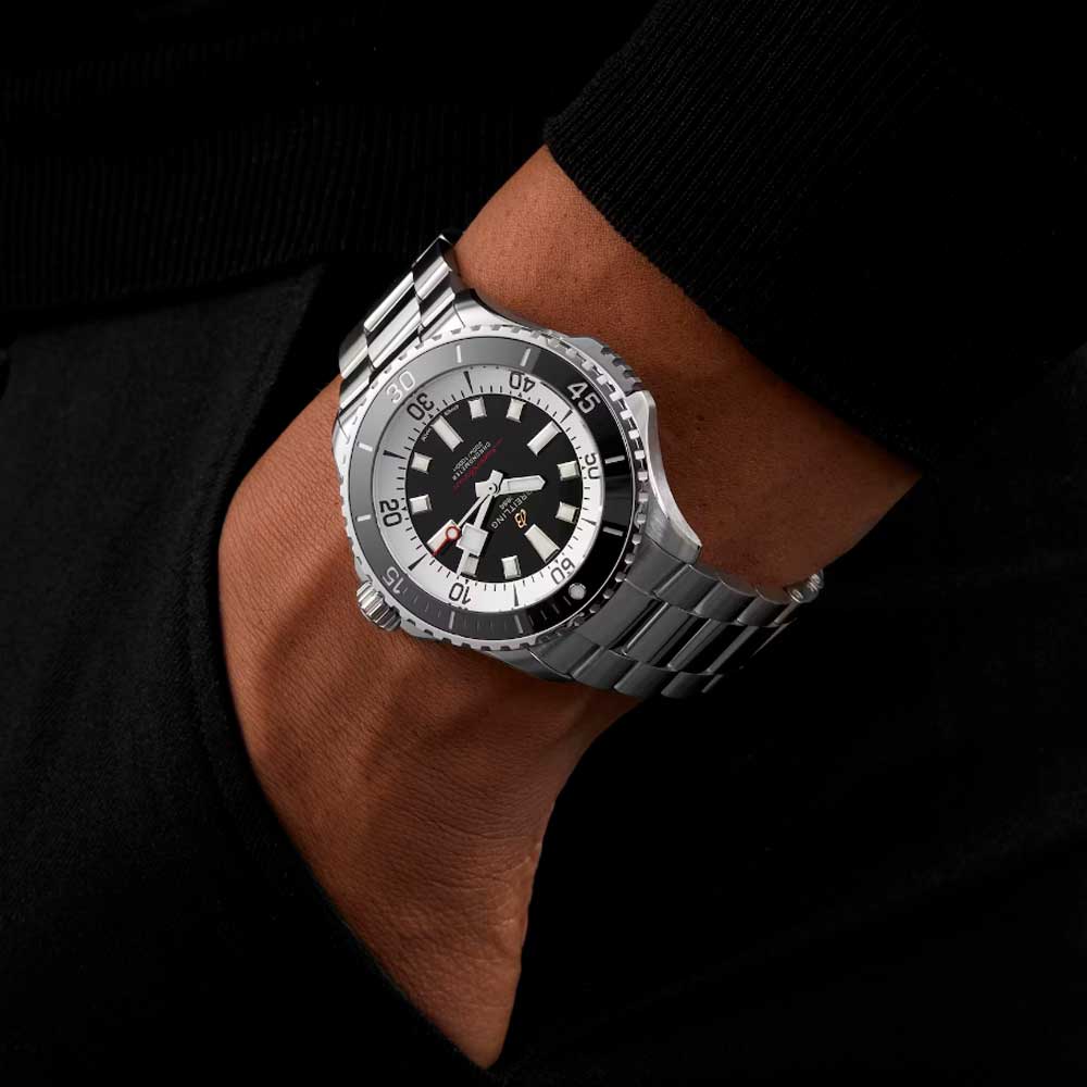 Безупречный швейцарский аксессуар пронизан особенной ноткой драйва, которая придется по душе всем дайверам. В швейцарском механизме 26 камней, частота 28800 полуколебаний в час. Запас хода примерно 38 часов. Возможность ручного завода. Хронометр сертифицирован C.O.S.C. Циферблат с метками в виде штрихов защищен прочным сапфировым стеклом. Антибликовое покрытие стекла позволит вам без труда узнать время даже в самый солнечный день. Безель с керамической вставкой вращается в одном направлении. Завинчивающаяся заводная головка с защитой и двойным уплотнением. Завинчивающаяся задняя крышка. Браслет с раскладывающейся застежкой. Застежка с системой увеличения длины (до 15мм).
